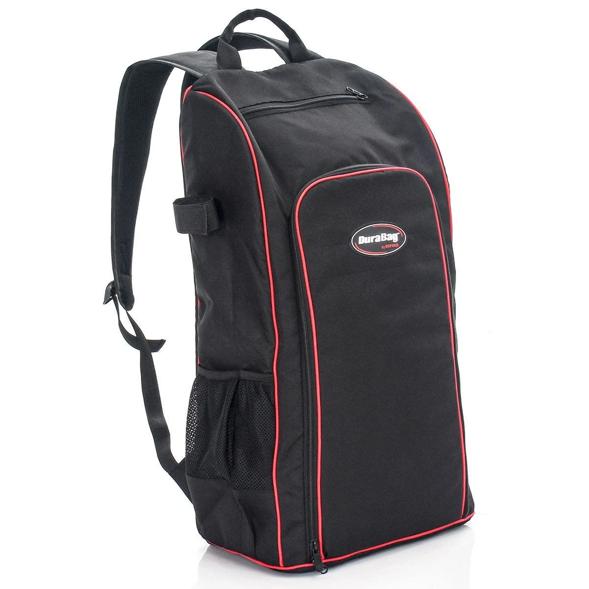 Constructed of durable Condura nylon, this extra-large backpack is made to last and fits everything you need in one bag. A large zipper opens to a deep compartment for easy access to all stored items, while one small zippered compartment keeps smaller or valuable items from being lost. Stretchy mesh pockets on the sides are perfect for quick access to smaller equipment such as a water bottle, timers, or markers, or store a bat and secure it with the sewn-on hook-and-loop fastener strap. Padded shoulder straps add comfort and disperse weight to carry it all with ease. Bag measures 26”L x 8”W x 30”H; 2 lb.