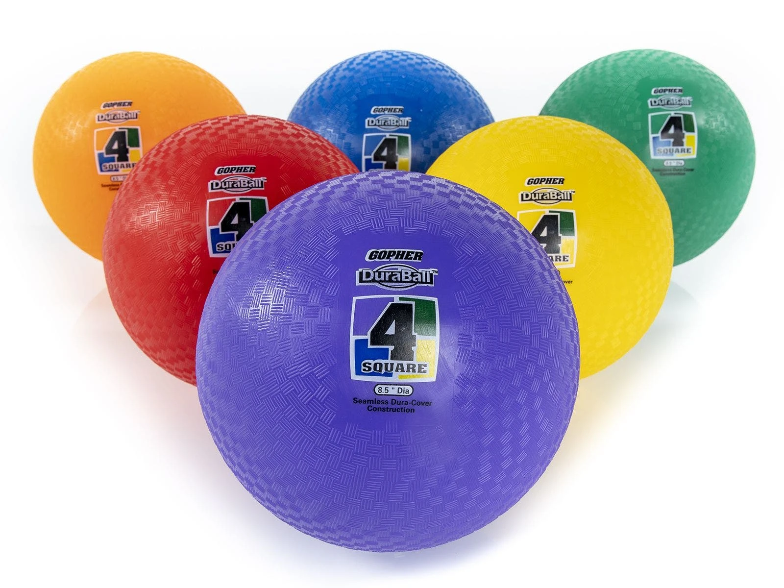 Step into the square with a friendlier ball that lasts for years. Featuring a soft, one-piece design, this ball offers a more inviting experience for all ages, while its stippled surface increases grip and control. The 2.5 mm thick rotomolded liquid vinyl construction holds up better than rubber playground balls for long-lasting play on the gym floor or out on the courts. Plus, it wonβt harden or crack over time. The rules of 4-Square are printed right on the ball so games never slow down. 8.5β dia. Available in a Set of 6
