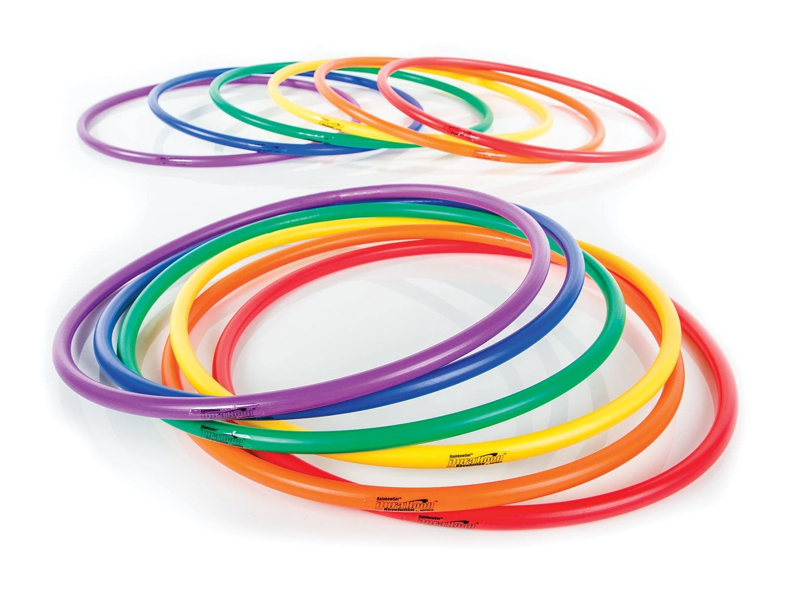 Beginners will appreciate the added weight of the hoops because they move more slowly than other hoops while learning movements. Teachers can also use these hoops to set up obstacle courses or targets during activities.