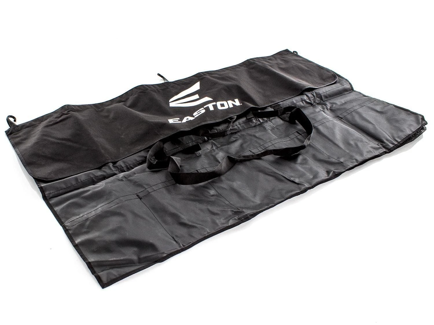 Bag rolls for transportation and comes equipped with a carrying handle for easy portability to and from the field. The black bag is ideal for an entire softball or baseball team’s helmets.