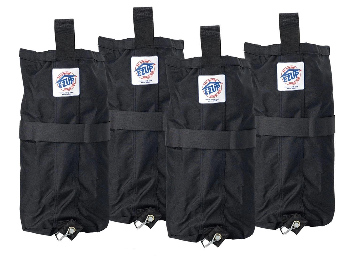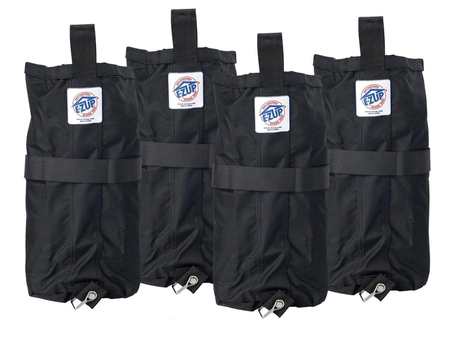 When setting up the canopy on hard surfaces, you can rely on a set of 4 weight bags to keep it in place. Each bag holds up to 40 lb of sand (not included) and wraps around the canopy legs vertically for added stability.