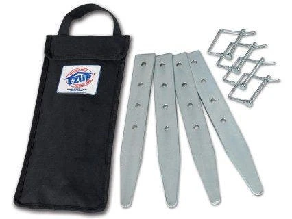 Increase the stability of the frame on your Eclipse II Canopy Shelter using 4 heavy-duty stakes. Drive the 14″L stakes into the ground next the legs and attach the quick-release pins. When not in use, store the stakes in an included storage bag.