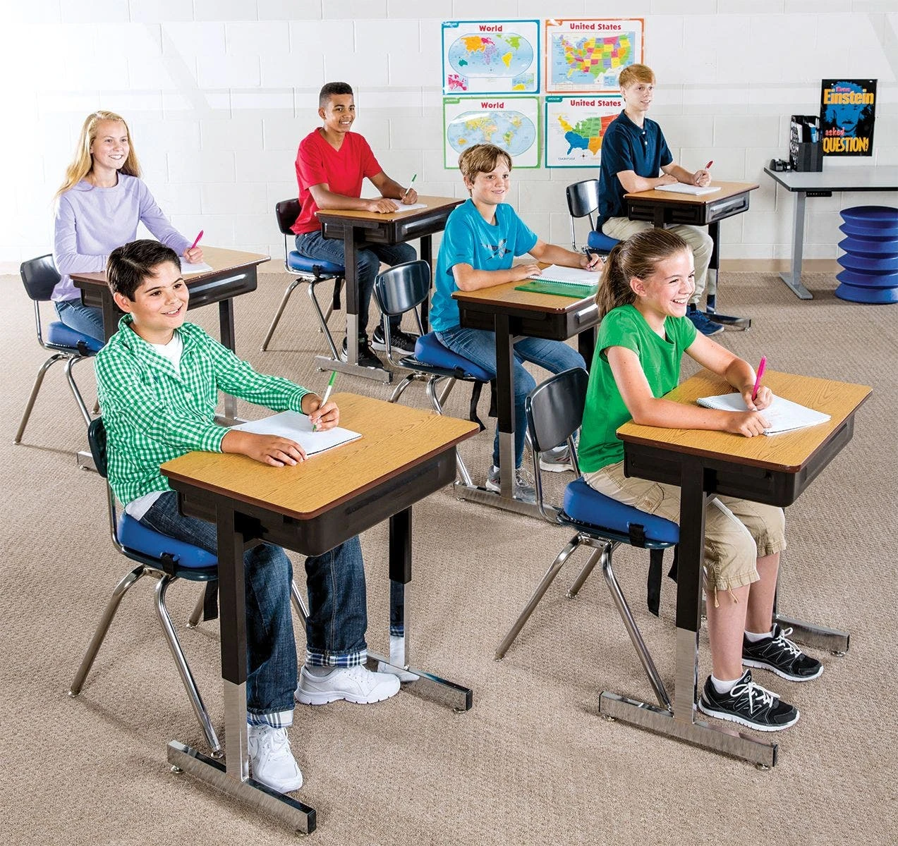 Simply place this cushion on a standard classroom chair and secure it with the strap; it’s that simple! Studies show that students with active seats perform better and absorb more information for longer periods of time, improving their test scores and overall attention in the classroom. No longer does a student’s fidgeting have to be a distraction!