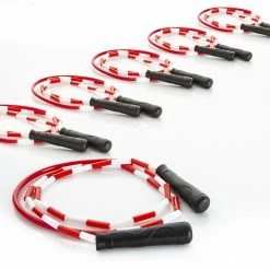 Unique design of NeverWear ropes protects both the rope and gym floors. We replaced the plastic segments in the center of the ropes with a PVC section that absorbs impact, resists wear, and won’t leave marks where it makes contact with the ground. The heavier weight of the PVC and 1-1/2″L x 7/16″ dia plastic segments also allows the rope to turn at a slower speed for beginners. As the rope hits the ground, it provides jumpers with rhythmic audible feedback.