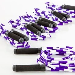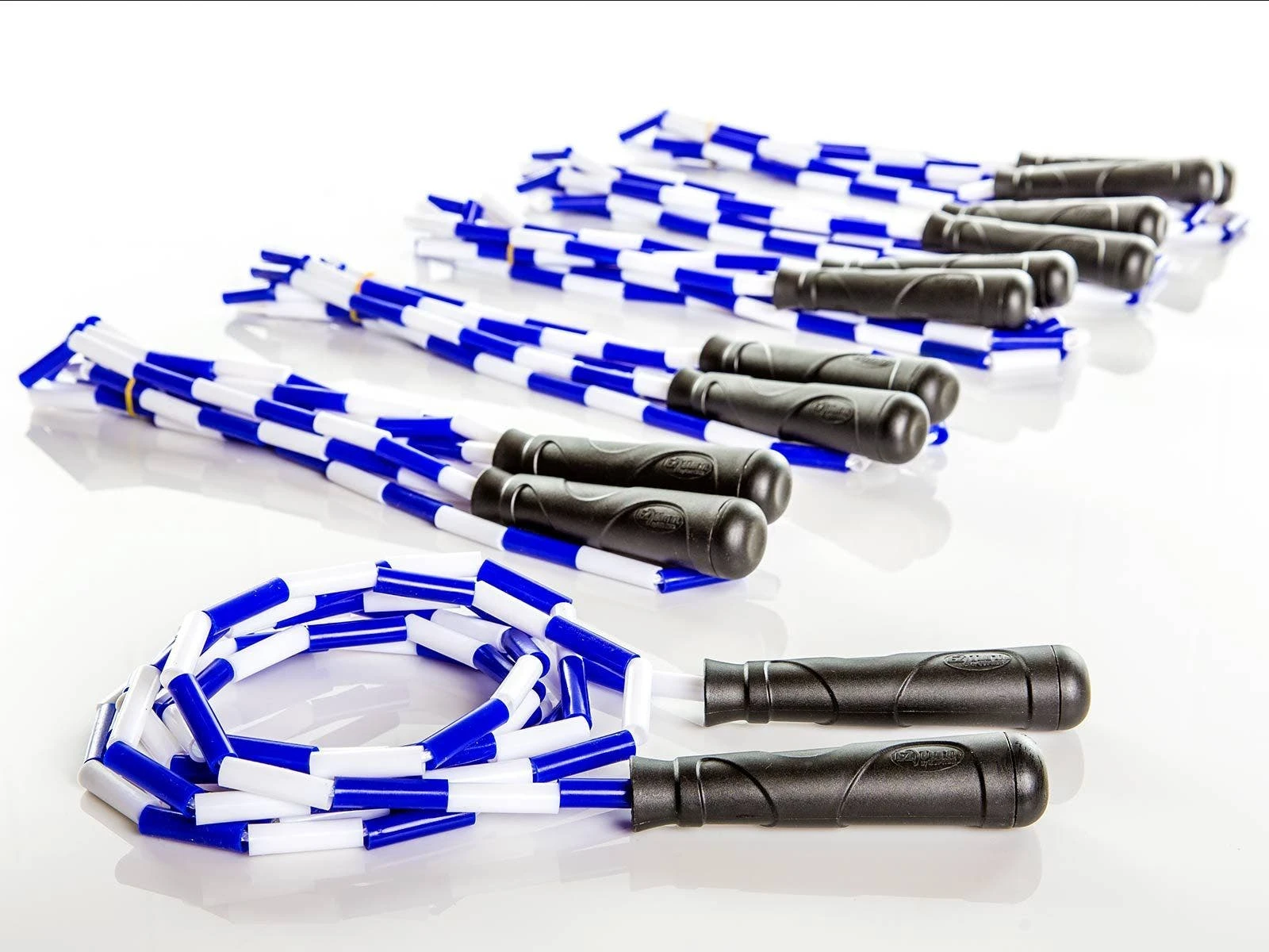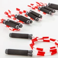 The no-slip grip pattern and molded-plastic ball bearing in each handle provides fluid, fast, and controlled revolutions. These ropes are engineered for lasting performance, featuring durable, plastic segments and sturdy, one-piece ergonomic handles. A variety of sizes and vibrant colors makes them ideal for teaching beginners the fundamentals in an institutional setting!