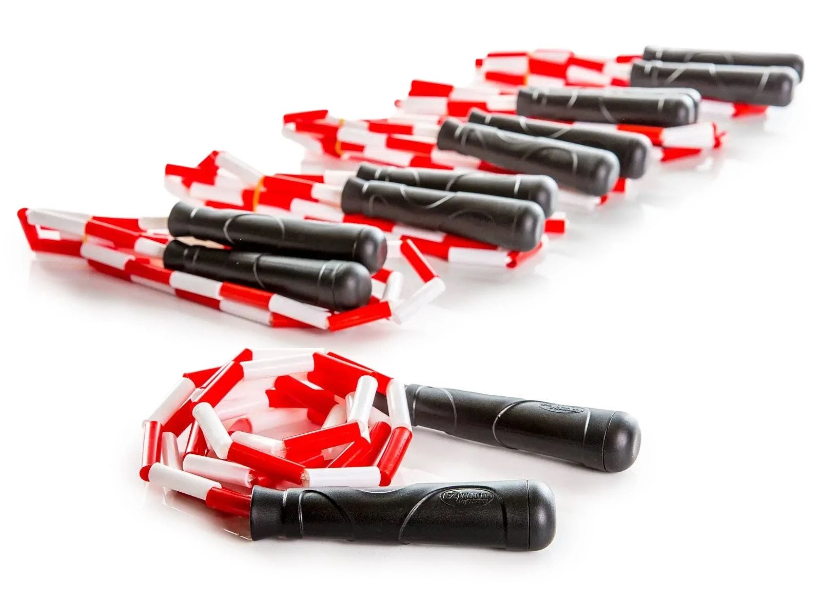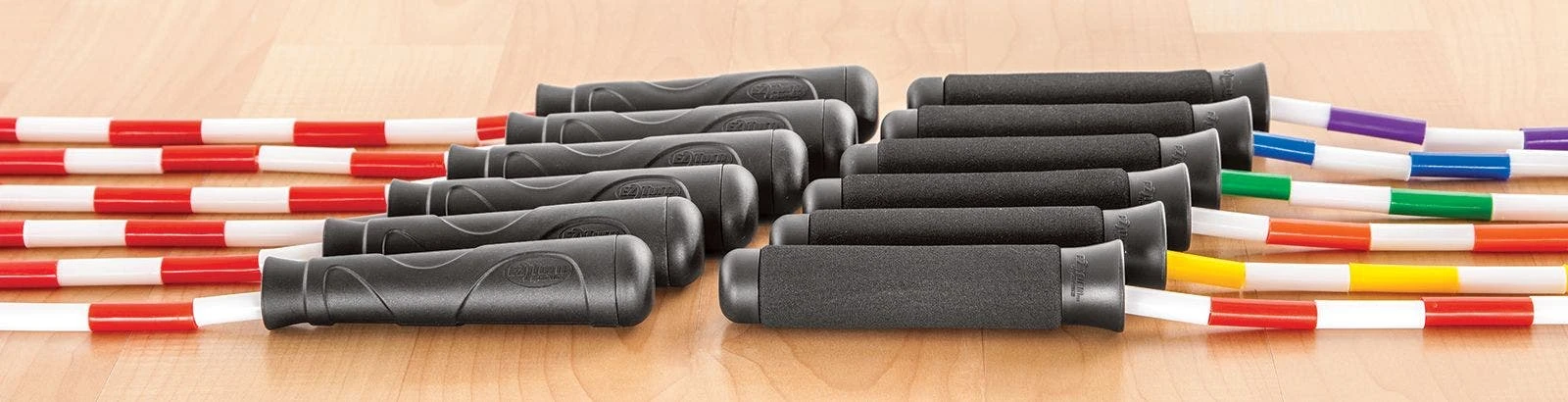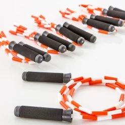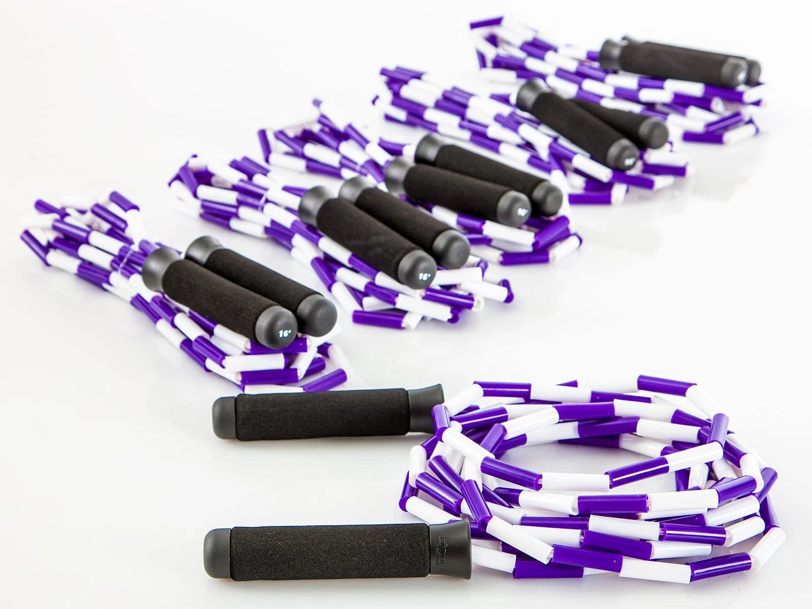 Available with brightly-cored segments in varying lengths, it’s easy to acclimate kids with an ideal-fitting rope. Rope color designates length, making it extremely easy for students to remember which length works best for them, even weeks later! The longer 16’L rope can be used for Double Dutch.