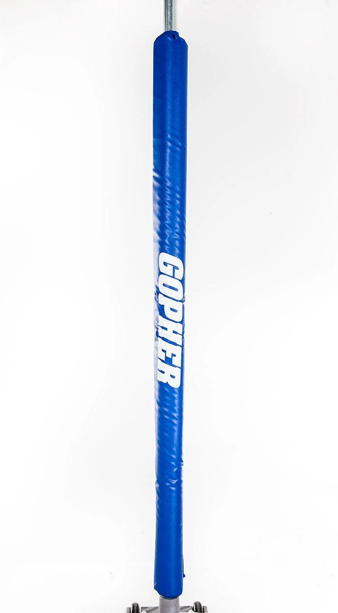 These pads fit posts up to 1-3/4″ dia. At 72″L, they cover most of the upright. A hook-and-loop fastener strap makes installing the pads easy. This is the only post padding we offer for our portable game standards.