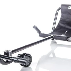 Unlike traditional trikes or bikes, the EzyRoller ride-on toy does not rely on pedals to produce momentum. The low design of these rollers gives them a go-kart feel, while the cambering motion used to power them provides a fun challenge. Cambering, a locomotion technique, involves alternating simple left and right leg movements to maneuver a bar. This nudges the scooter forward. This technique is fun and a great exercise for the lower body.
