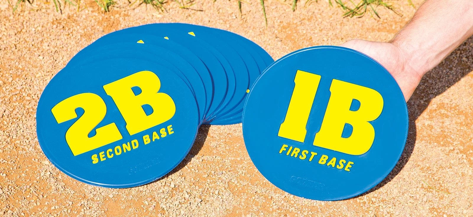 Place a thick vinyl spot with molded-in references for each fielding position to provide a visual clue for players just learning the game. Each spot measures 9” dia, making them easy to see but small enough not to interfere with play.