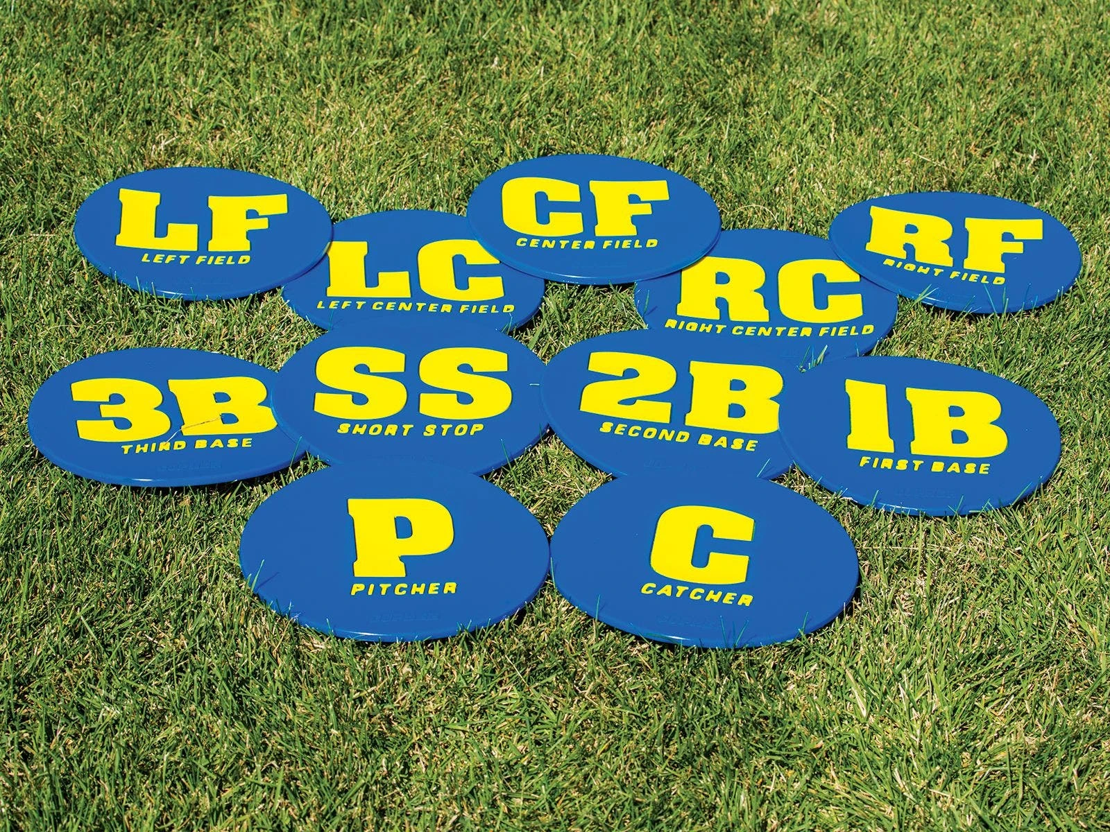 The heavy-duty vinyl construction of these markers ensures they will stand up to constant use in multiplayer settings. Spots are available in sets of 11, including all 9 baseball positions plus additional softball positions of Left Center and Right Center.
