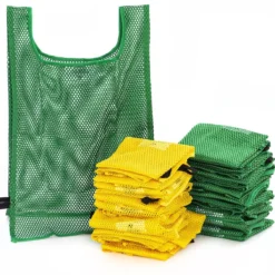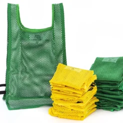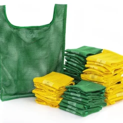 Quickly organize and identify teams using the two contrasting colors in three styles. They vibrant colors make it easy for students (and teachers) to see their teammates when running around the gym or field.