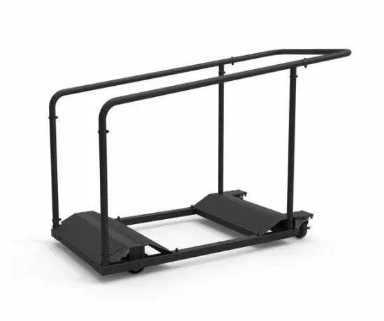 Strong, weather-resistant cart is made of powder-coated steel tubing for enhanced strength. Swiveling casters allow for easy movement indoors and out, while two casters also lock in place for extra security when not in use. The cart is compatible with folding tables 30″W and 6′ to 8’L. Tables sold separately. Cart is 59″L x 27″W x 38″H.
