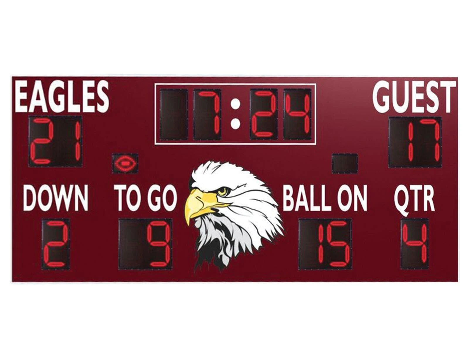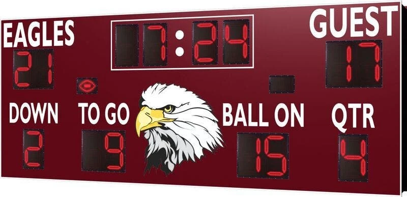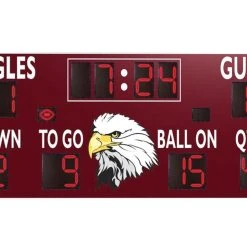 The 20″H LED numbers on this scoreboard allow for maximum viewing from as far as 300′ away. They have a 100,000 hour rating and will last through several seasons of football. This board features home and guest scores, yards to go for first down, ball on, down, quarter, and 6-1/2″ possession indicators.