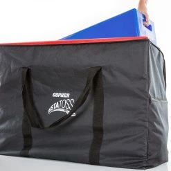 Rotomolded plastic boards will not crack or rust during use, indoors or out. The pocket (or “hole”) is molded into the board, catching and holding beanbags that fall into it. This means players do not have to lift up boards to retrieve beanbags. Plus, since the bags do not fall to the ground, they will stay cleaner. Rubber feet keep the board stabile during indoor use. Each board is 34″L x 24″W x 12″H; 13 lb.