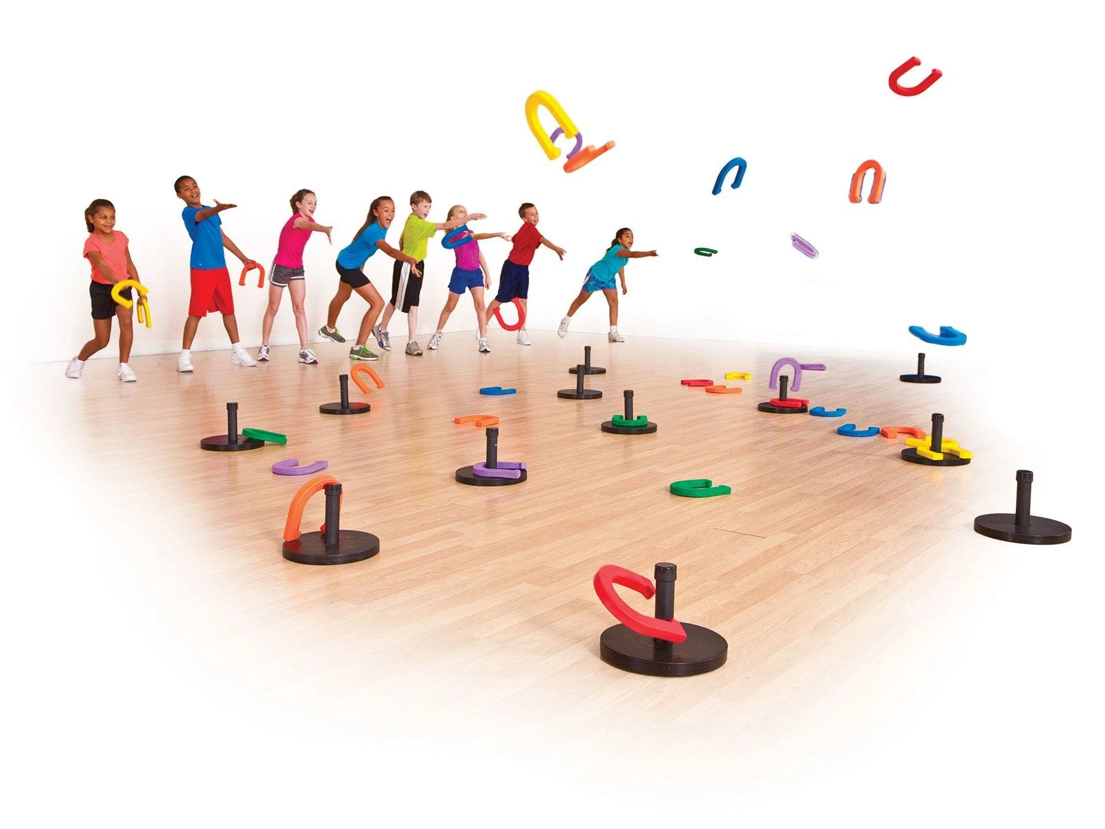 With so many horseshoes available, teachers can set up a wide variety of activities during PE classes and after-school programs. This set includes activity instructions for action-packed team relays and game alternatives.