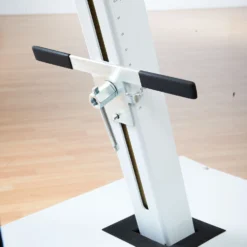 System adjusts from 7′ to 10’H, making it a great addition for teaching skills to students of any age during PE class. You can also use it as a side court system for light play. Height markers on the back of the system show the height of the hoop. When extended to 10’H, the system has a 32″ setback.