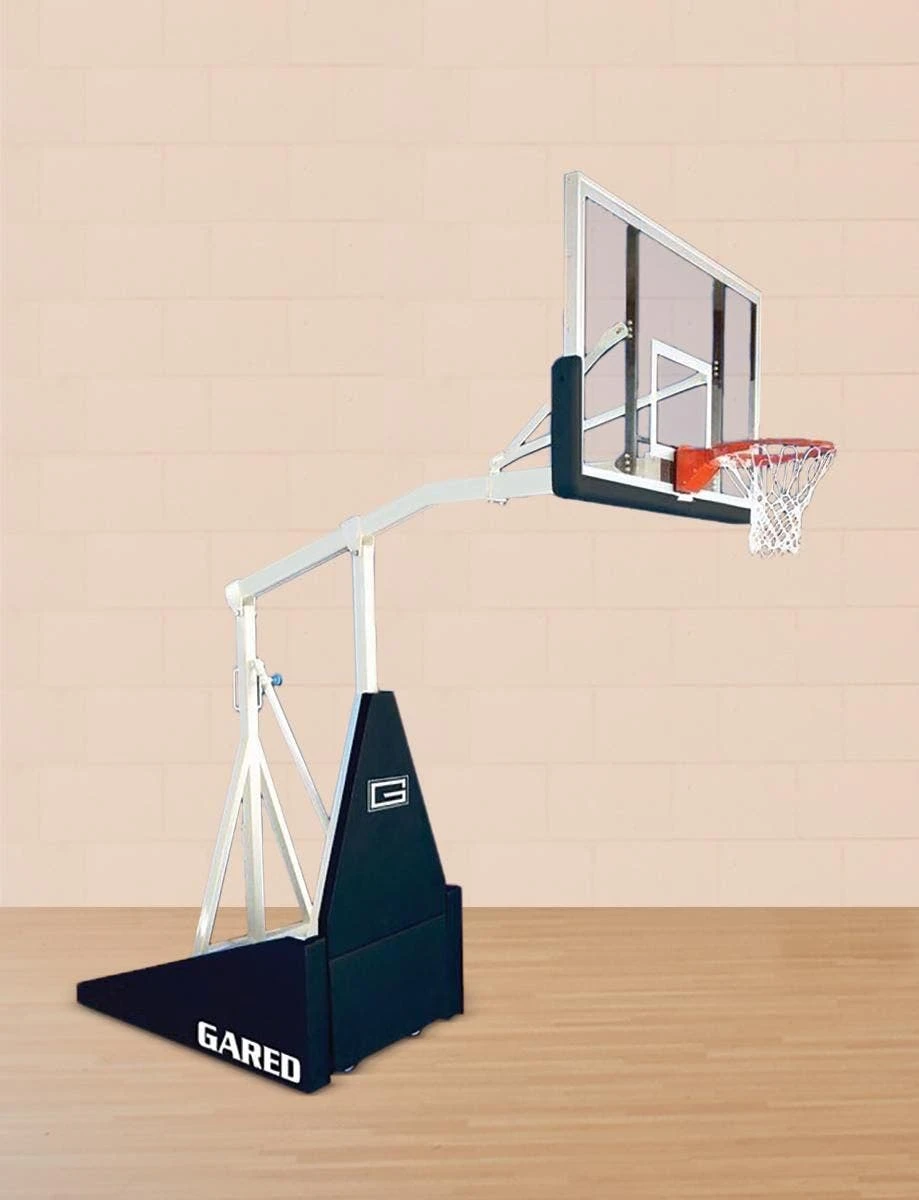 Unique tension spring mechanism provides effortless lifting and lowering of the system to the preferred height. Teachers and coaches can adjust the 5’L boom extension to raise or lower the goal to 8′, 9′, or 10’H. Base includes a 900 lb ballast and anchoring system for extra security. Fold the unit for easy transportation on non-marking casters.