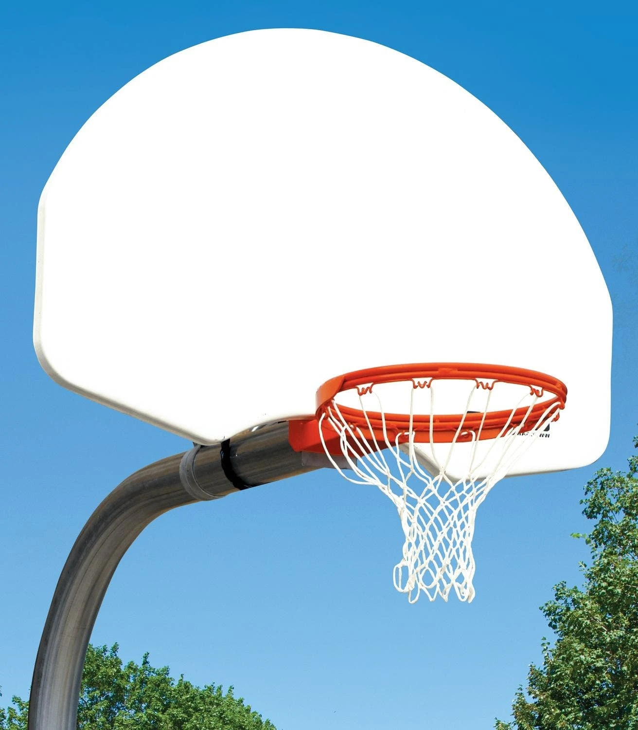 - Available with a fan-shaped steel backboard with or without a border/target; 54″W x 35″H