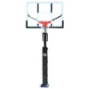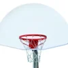 This system is available in 2 sizes. The 5-9/16″ OD straight post has a 5′ setback, while the 6-5/8″ post features a 6′ setback. Both include an official-size 72″W x 42″H rectangular steel board with a highly visible orange target and border. Equipped with a fixed double-rim goal for extreme stability and performance.