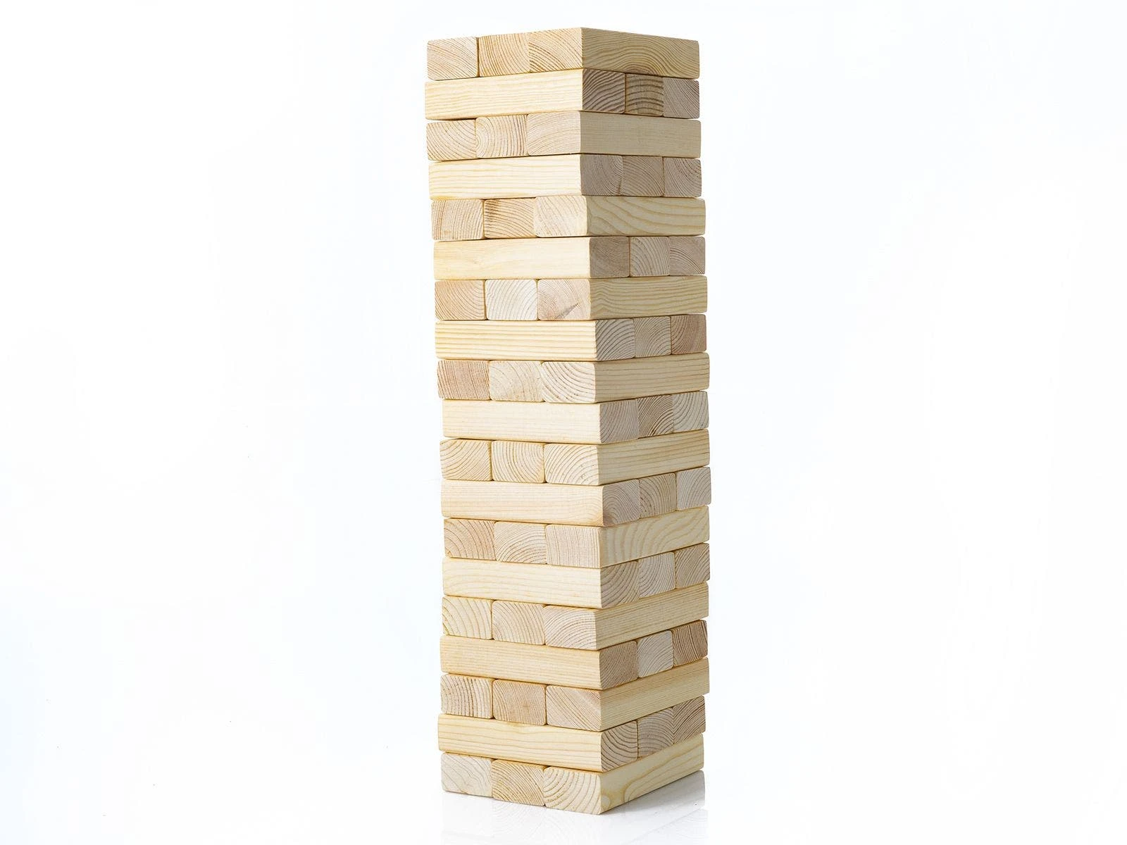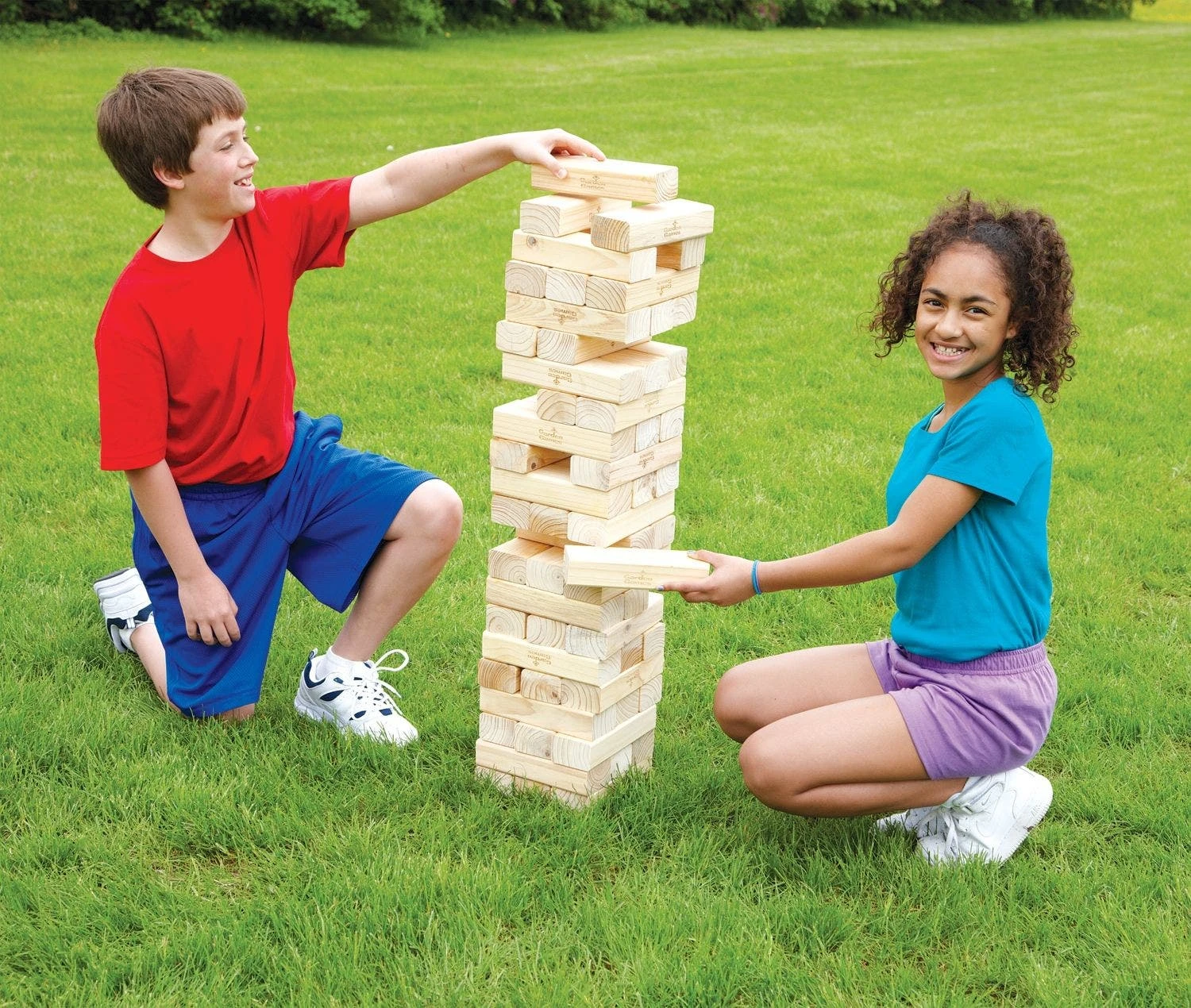 Build a tower using individual wooden blocks. Have students take turns removing the pieces and restacking them on top, without causing the tower to tumble over! Students can play 1-on-1 or in teams. Solid wooden blocks are sturdy enough to handle tumbles and falls when the tower collapses.
