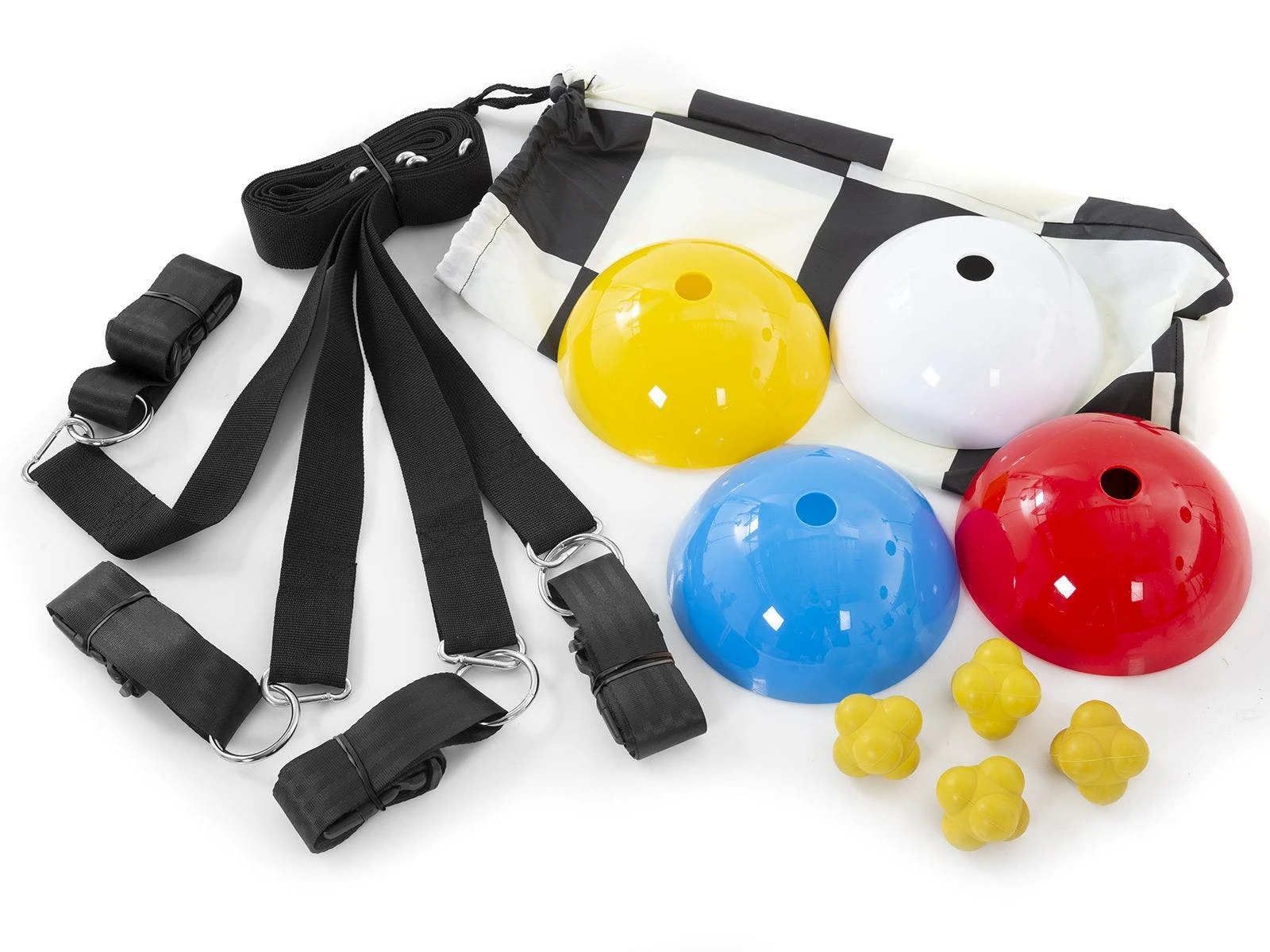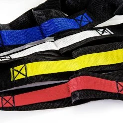 The square inside the rope is 19” sq and serves as a central point. Extending from all four corners is a 40”L rope and an attached harness. Rope set also includes four cones, 4 balls, 8 snap links, storage bag, and activity instructions.