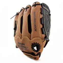 The all-synthetic material is light and does not require a break-in period, making the gloves ideal for beginners. An adjustable strap on the back lets players customize the fit. Available in 11″L, a great size for most ages. Bull’s-Eye catch balls sold separately.