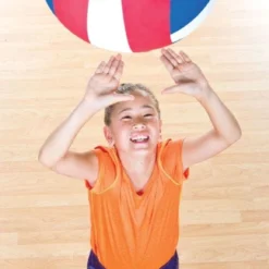 Larger, 16″ dia Biggie! volleyball is twice the size of an official volleyball, but it’s 20% lighter. Along with the 13″ dia Biggie!, these oversized volleyballs encourage young players to participate while avoiding the stinging sensation associated with traditional volleyballs. This helps students become more comfortable with the ball before moving on to regular volleyballs to increase difficulty.