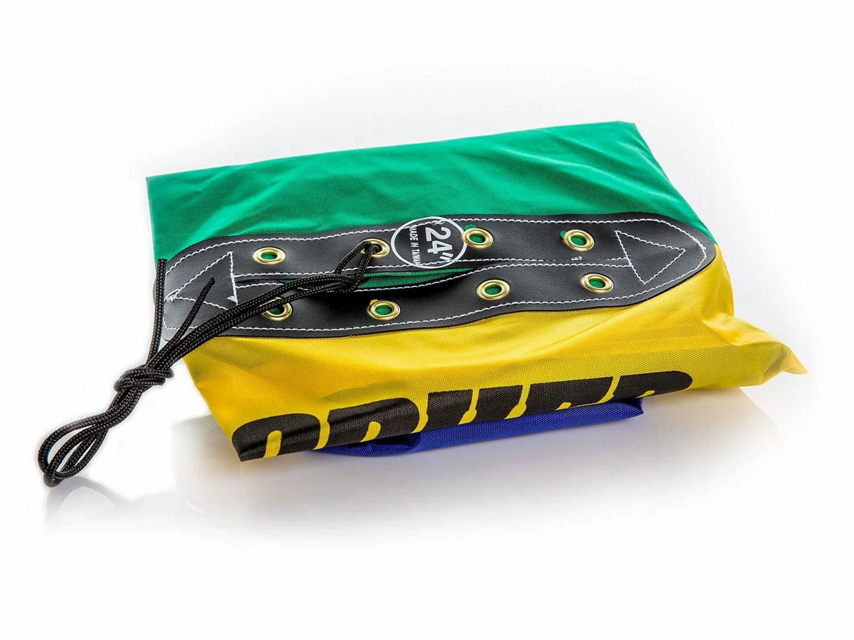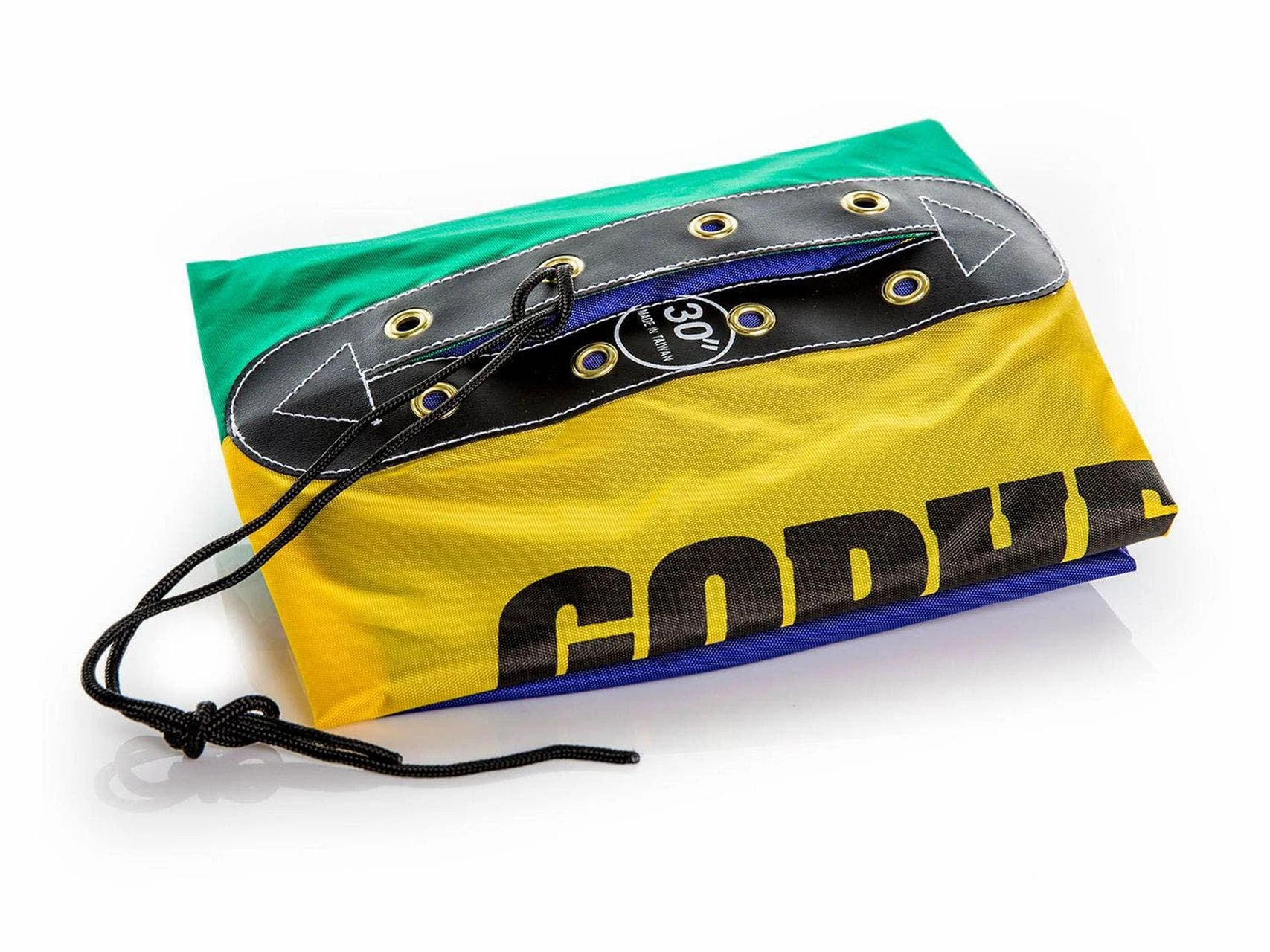 Long-lasting nylon cover is soft to the touch, yet durable enough to stand up to institutional play. The tough cover also helps the cage ball keep its shape longer than similar balls on the market. The colorful design is easy to track in the air and on the ground. Five sizes make it easy to accommodate a variety of age groups and activities.