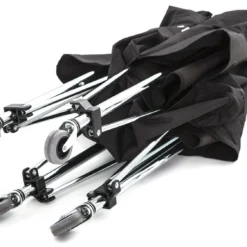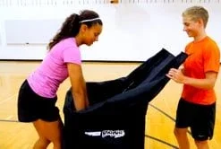 Durable, 1″ dia chrome tubing frame supports the oversized cart and stands up to tough use. Roll it from storage to the gym on four smooth-rolling casters. Volleyball cart folds for storage and fits into an included nylon storage bag with a hard plastic bottom. 59″L x 28″W x 47″H; 16 lb.