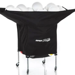 Enjoy maximum storage with this expandable volleyball cart. It features 4 arms that fold out from the main compartment, extending the carrying capacity to 50 regulation-sized volleyballs.
