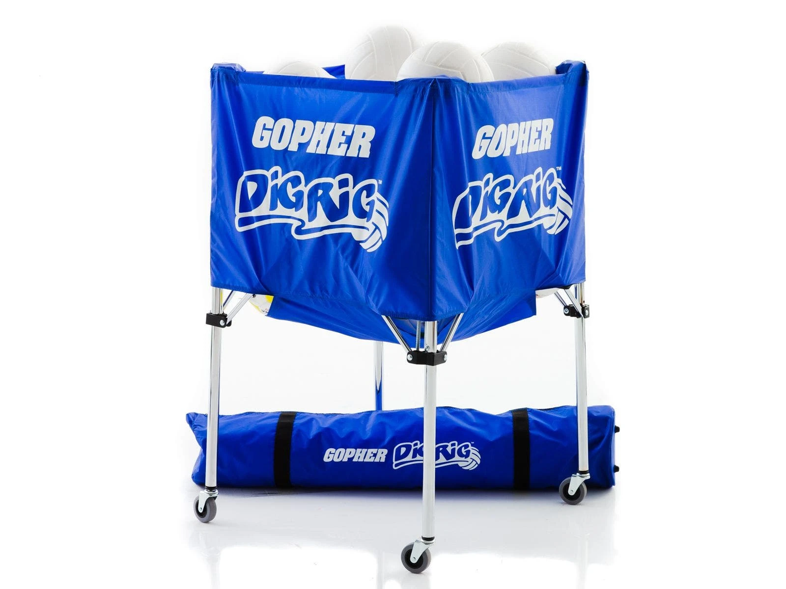 Cart is 25”L x 25”W x 40”H; 11 lb and holds up to 24 official size balls. Available in Royal Blue and Black.