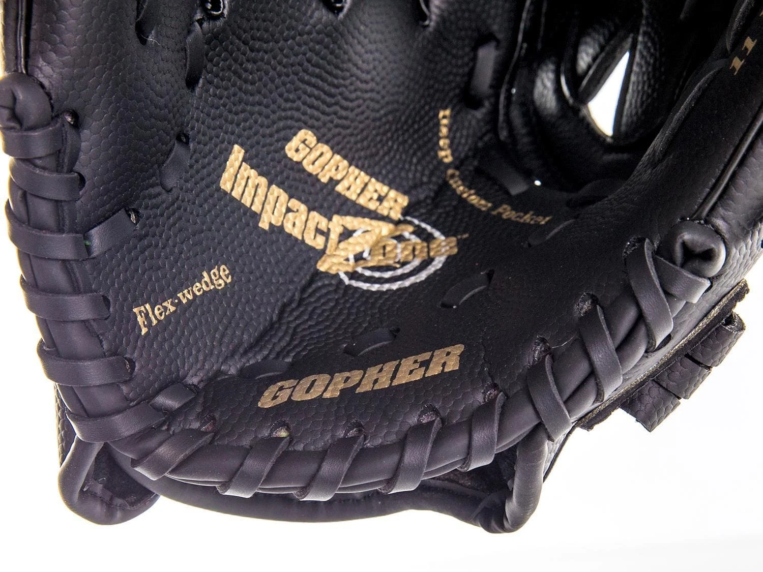 The glove’s synthetic leather construction is much easier to break in than traditional leather gloves. It is much lighter weight than leather, which is important for younger players just beginning the sport and learning proper technique. An extra-thick padded palm provides maximum shock absorption, taking a lot of the fear out of catching the ball.