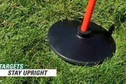Made with ABS tubing, teachers can count on these disc golf targets to stand up to consistent use. Each target includes a weighted base for added stability. When used outdoors, the base keeps the target upright on uneven surfaces or in windy conditions. Indoors, the base keeps targets sturdy without marring floors. Bases detach for storage.