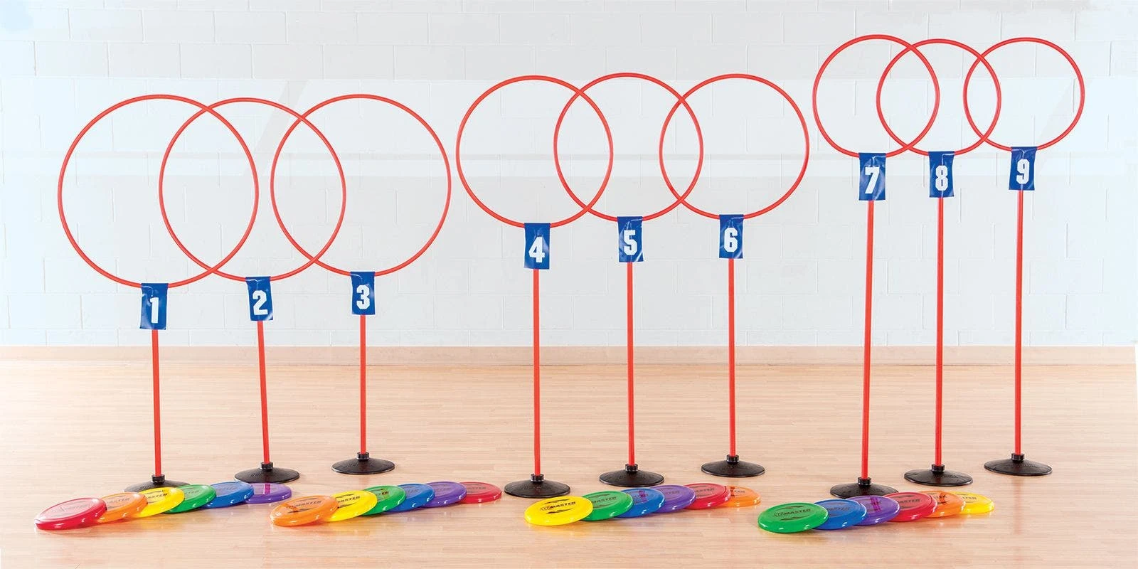 The most affordable hoop disc target system we offer is a versatile tool to teach students about throwing accuracy. Mix hoop sizes and heights for fun challenges. Teachers can also position the targets at varying distances to cater to all skill levels.