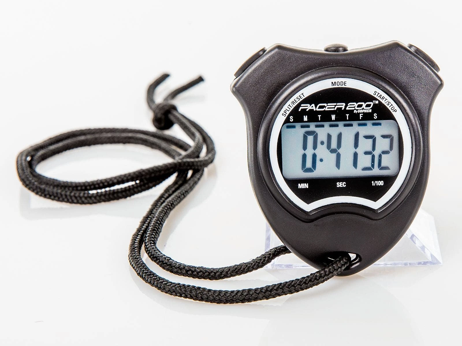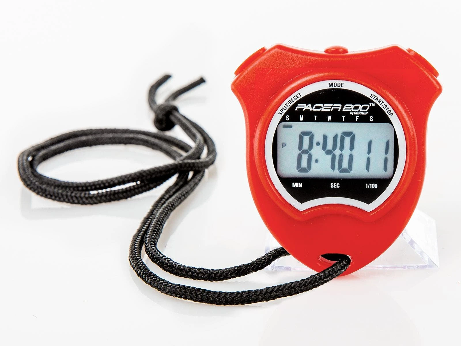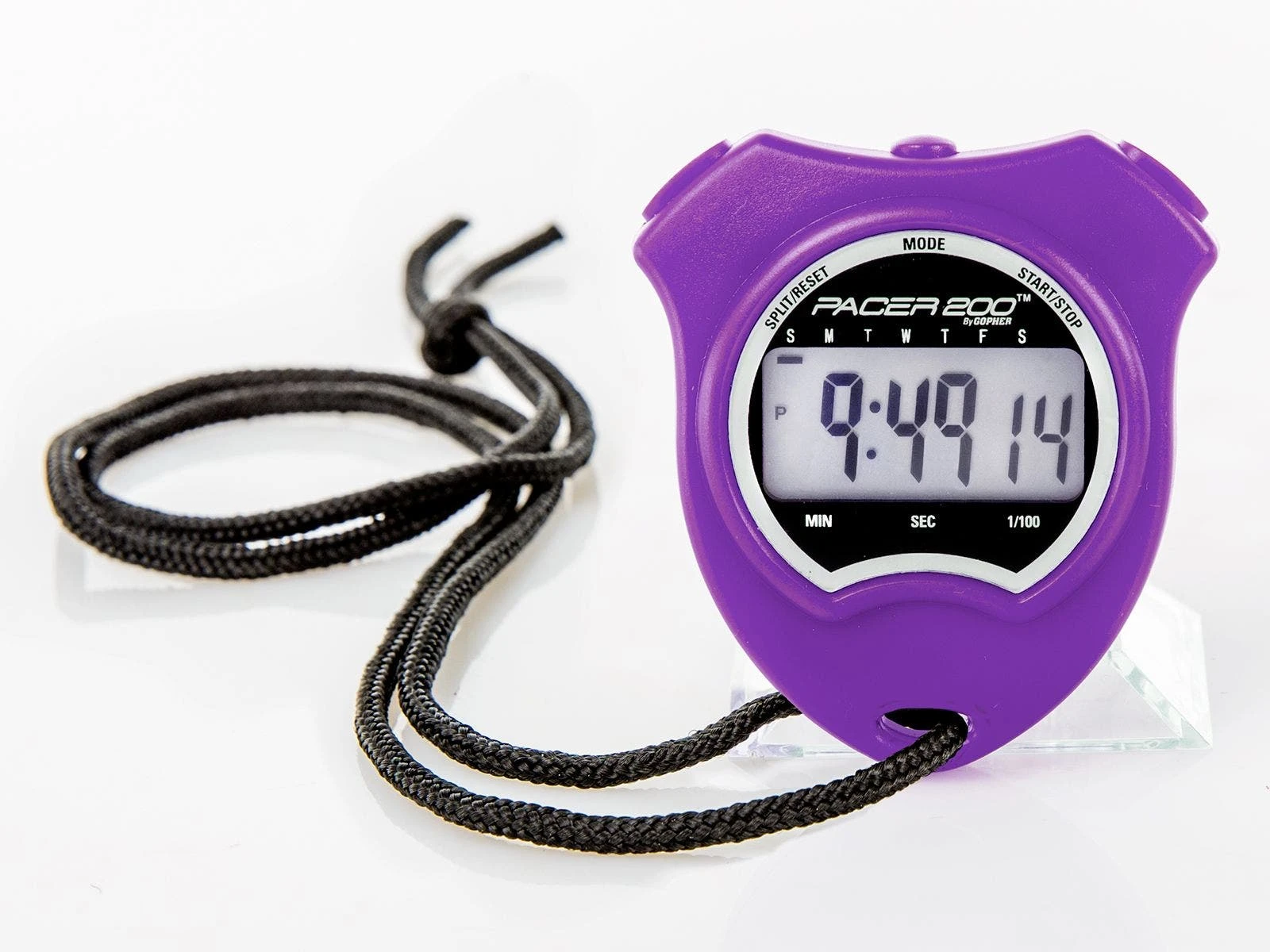 A simple, easy-to-use stopwatch with start/stop and reset functionality can be used by almost anyone! Time traditional track races, or use it in the classroom for reading events, spelling races, math problems, and more.
