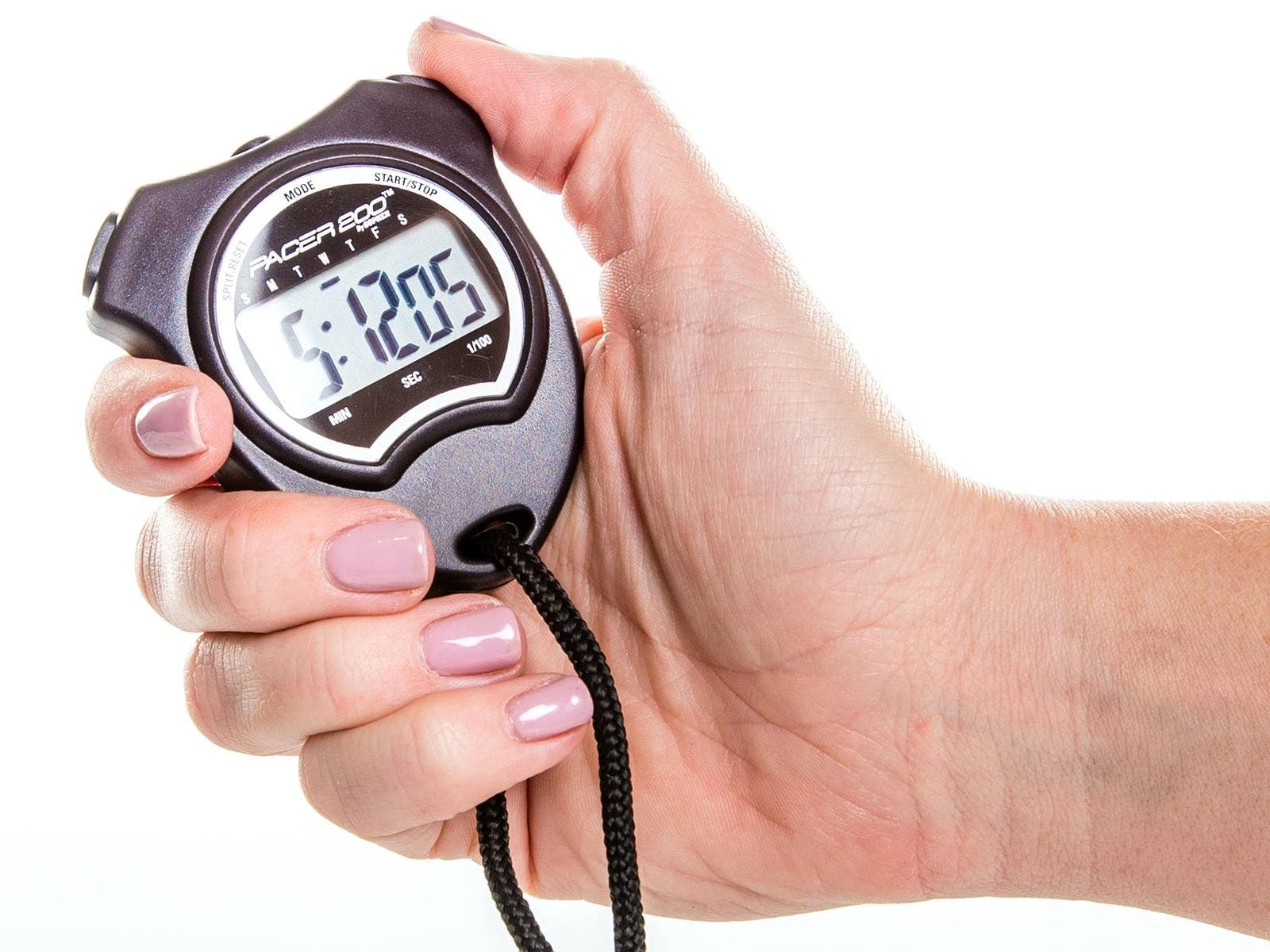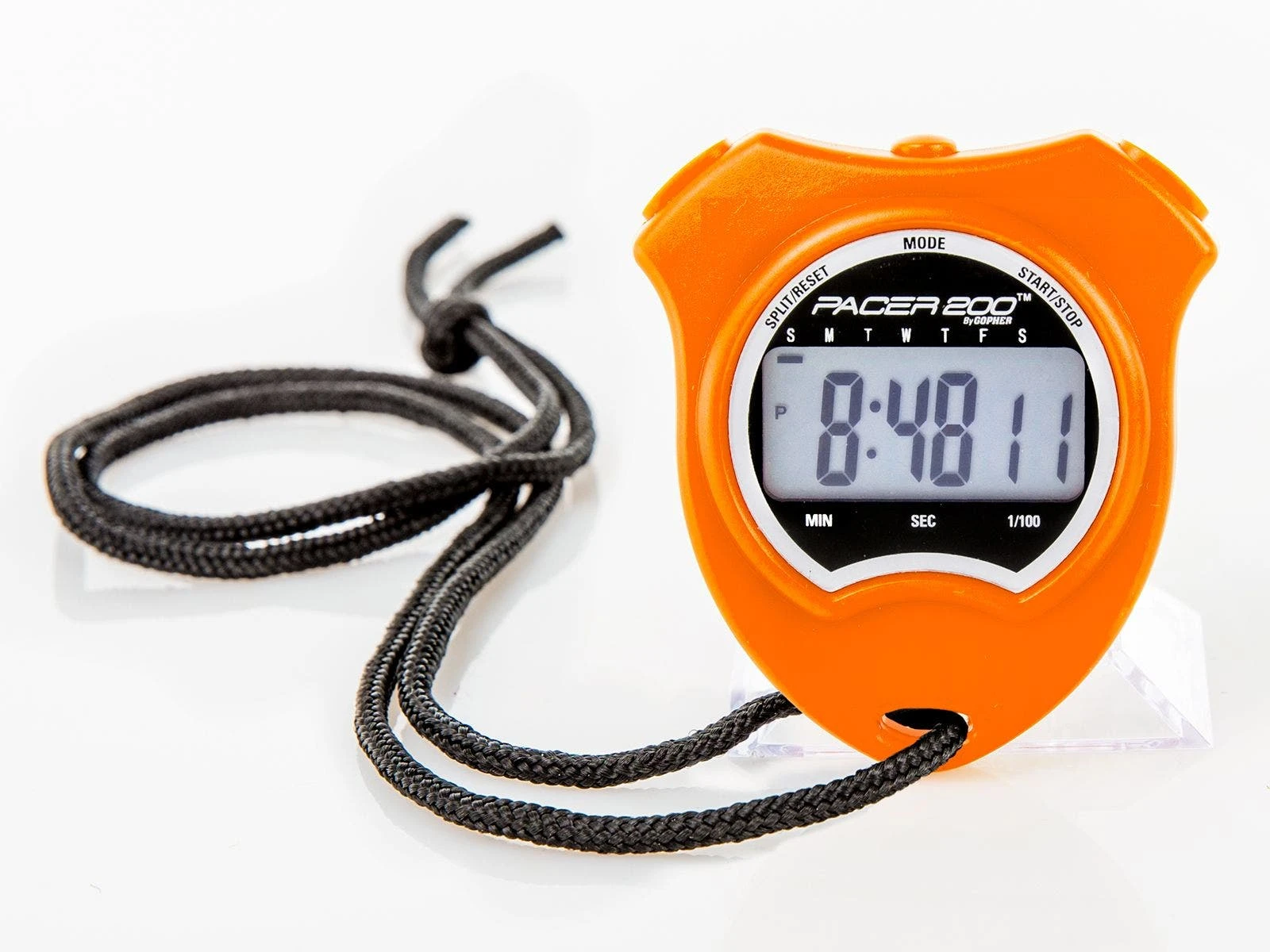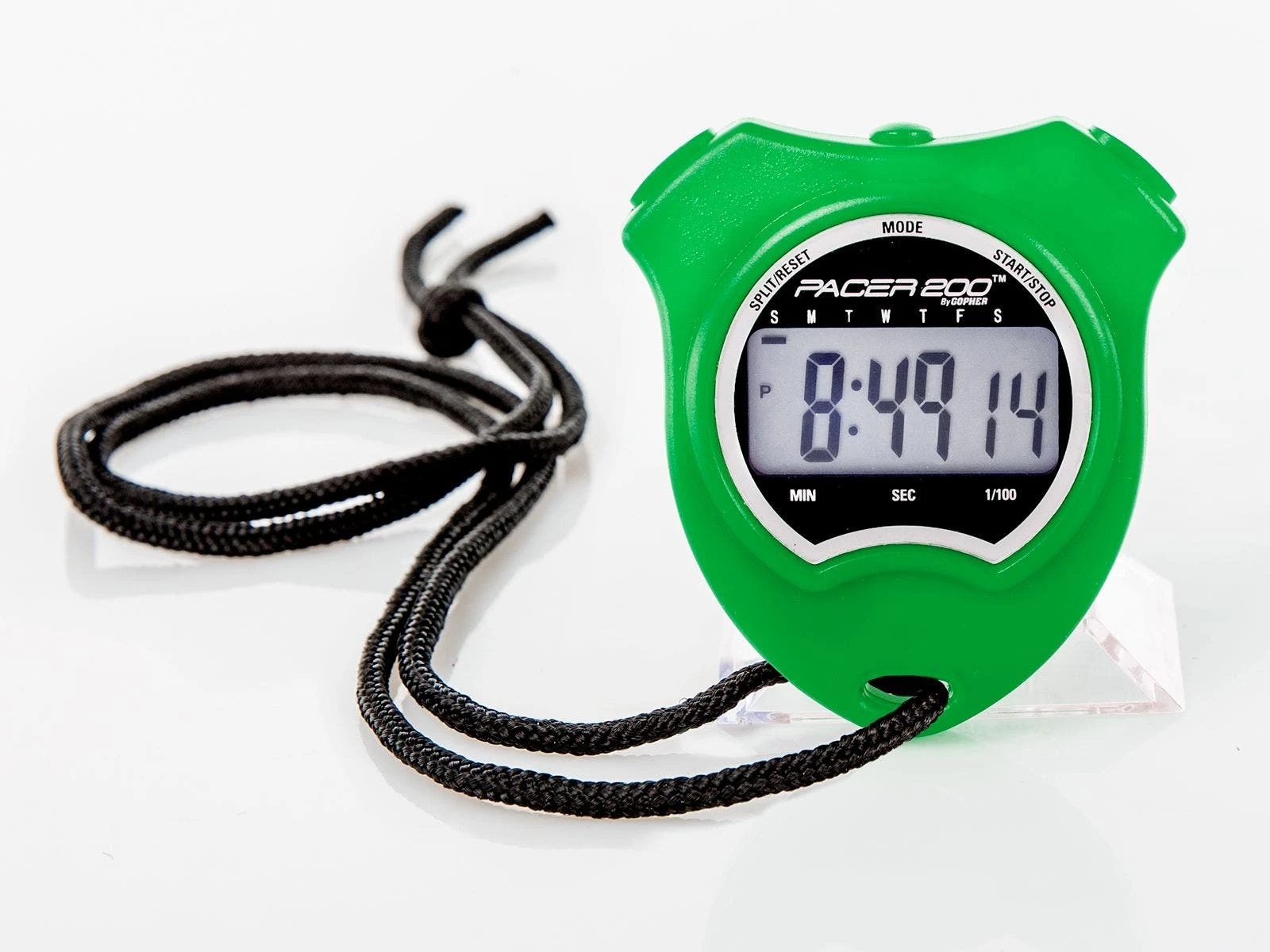A simple, easy-to-use stopwatch with start/stop and reset functionality can be used by almost anyone! Time traditional track races, or use it in the classroom for reading events, spelling races, math problems, and more.