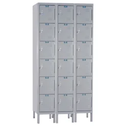 With frames made of 24-gauge steel, these lockers are ready to withstand heavy use. The entire unit is powder coated for a chip- and scratch-resistant finish. Louvered doors are made of 16-gauge steel with recessed handles on the double-tier lockers, and 18-gauge steel with padlock hasps on the six-tier style.