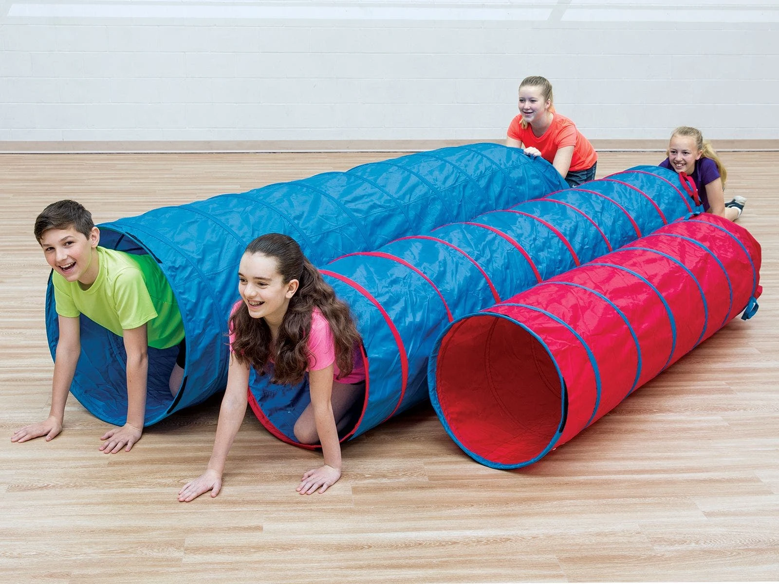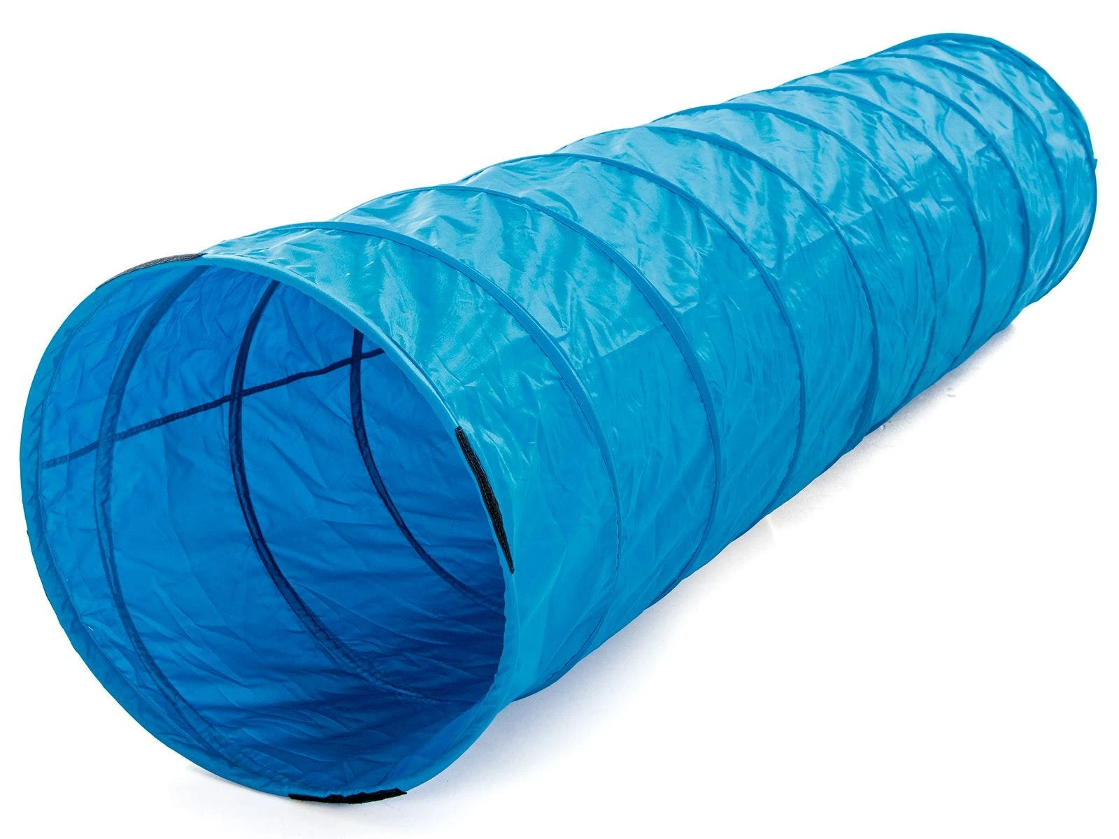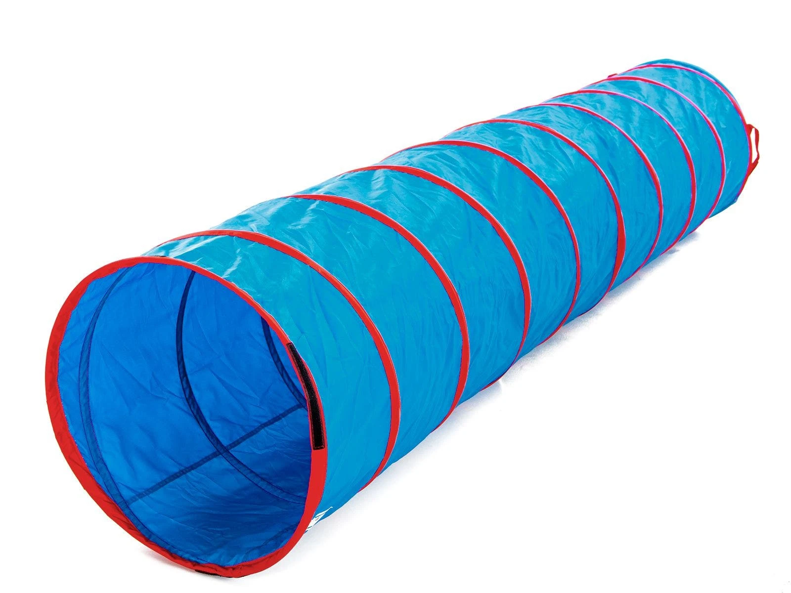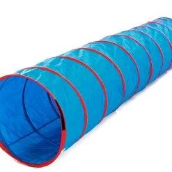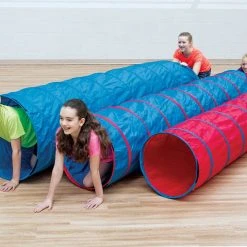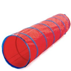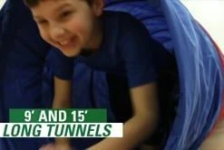 Polyester covers the sturdy spring-steel frame to protect the tunnel and climbers. Padded interior is more comfortable on knees and hands as kids crawl through. Tunnel folds down and secures via hook-and-loop fasteners for compact storage. ASTM certified. Choose from 6’L or 9’L; 9’L is available in 2 sizes.