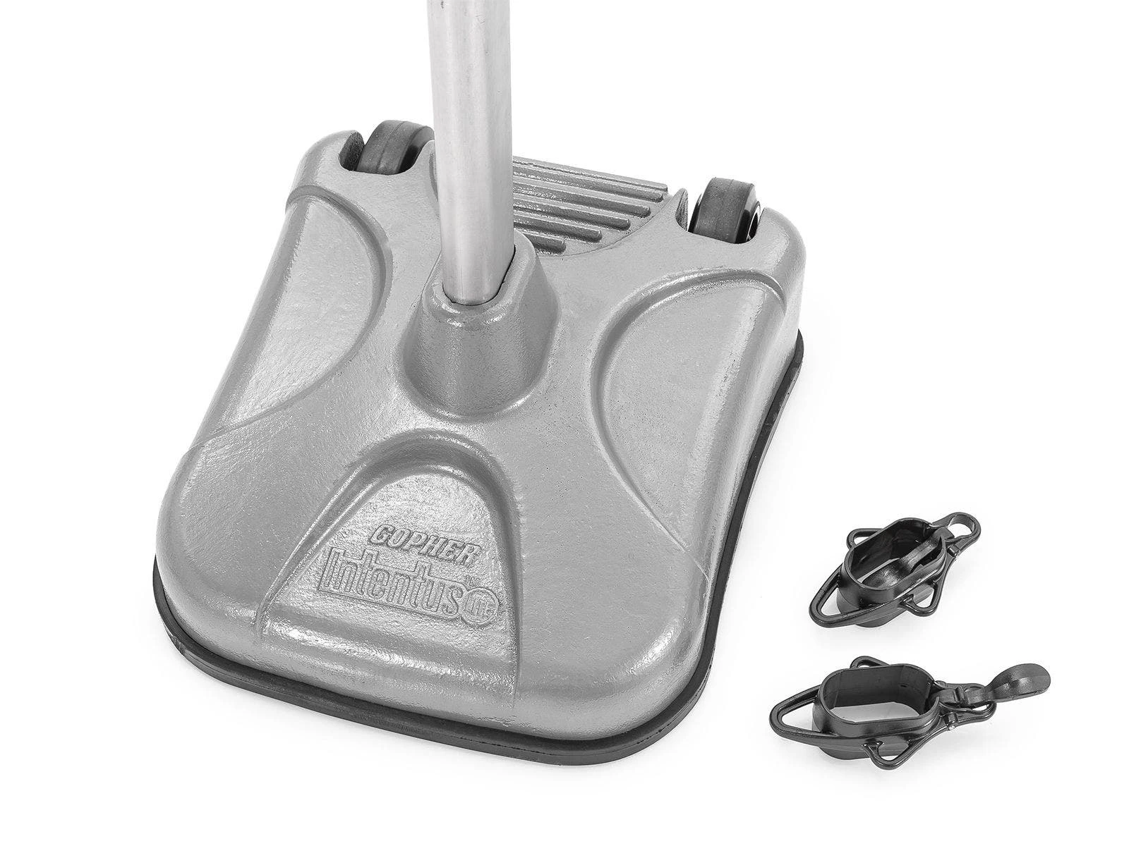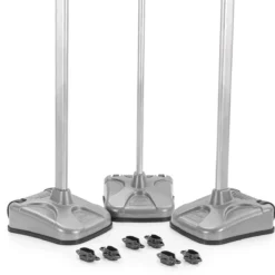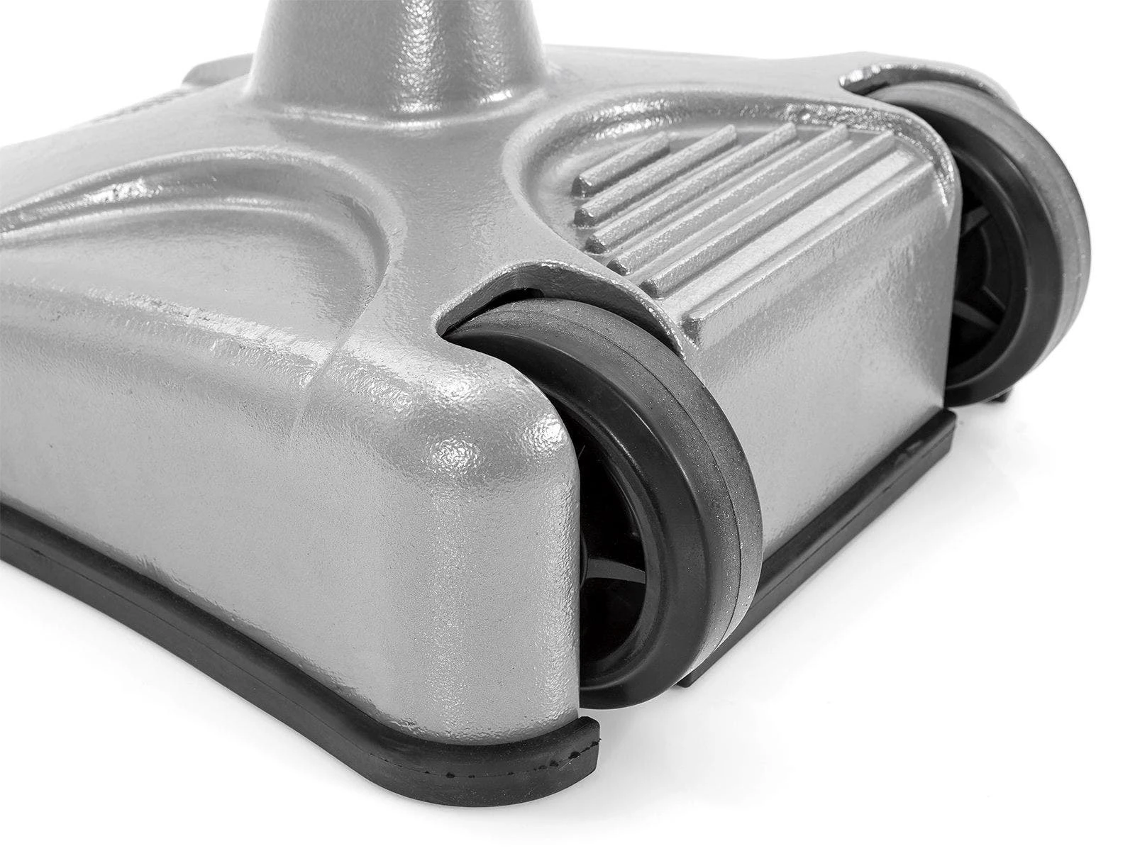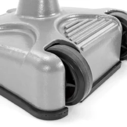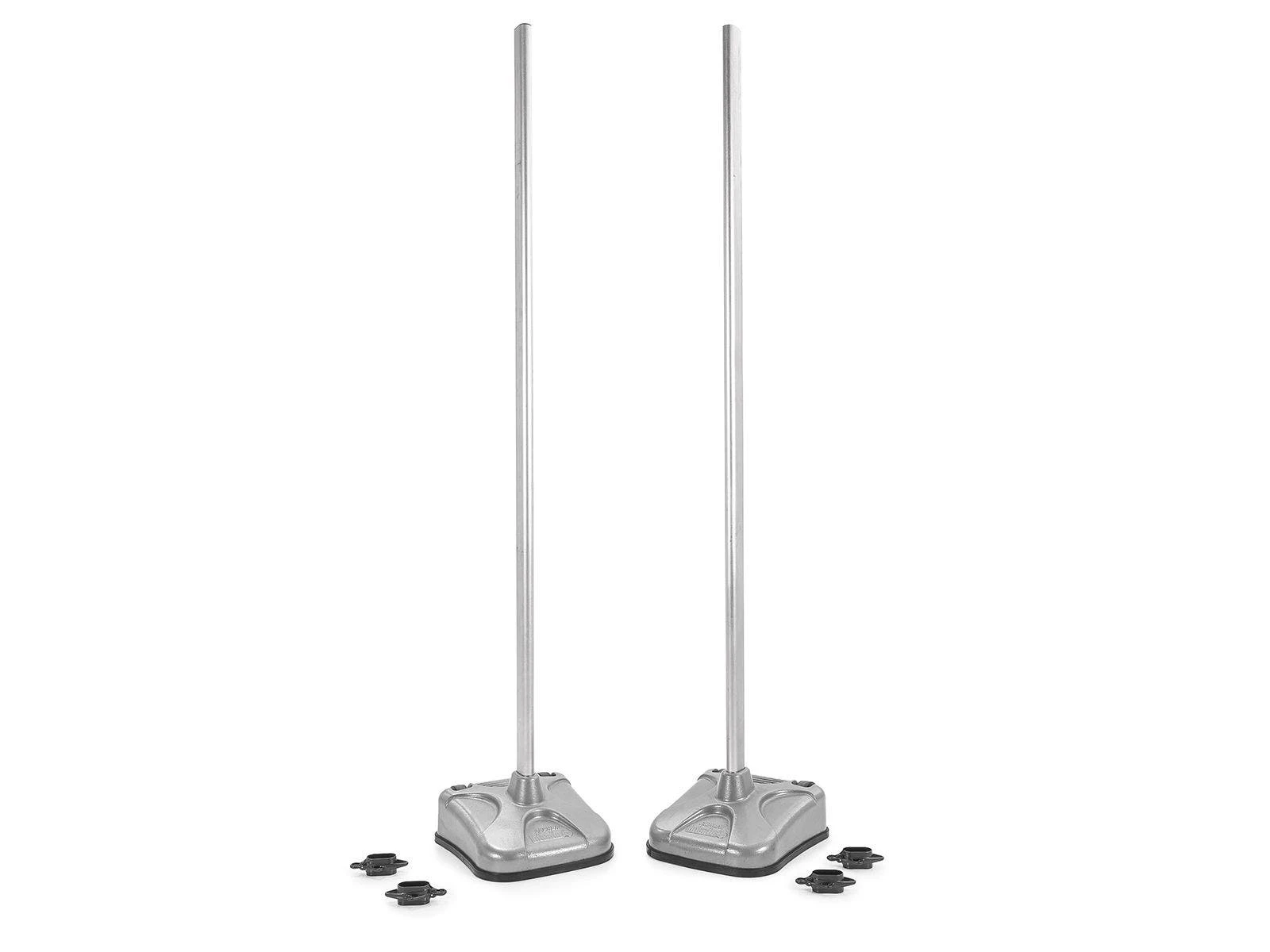 Oval-shaped poles fit snuggly into the base and will not spin during use, unlike round poles. They are compatible with QwikFlik collars that allow for fast net height adjustments. Poles bolt to the underside of the base, providing more stability. Rectangular base adds to the stability and net tension. Base is made of powder-coated steel and includes a rubber gasket around the bottom to protect floors. To move it, tip the base back on two 5″ dia non-marring wheels and roll it for easy transport. Standards are best for use during low-impact activities. When using them for volleyball or other higher-impact activities, we recommend using sandbag anchors.