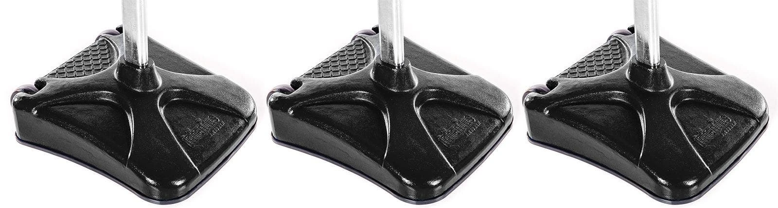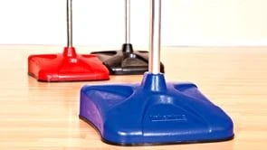 Each standard includes a 150 lb base, 10’H upright, 2 QwikFlik collars, and hardware. 2″ thick vinyl-covered foam base pads and 3/4″ thick post padding sold separately.