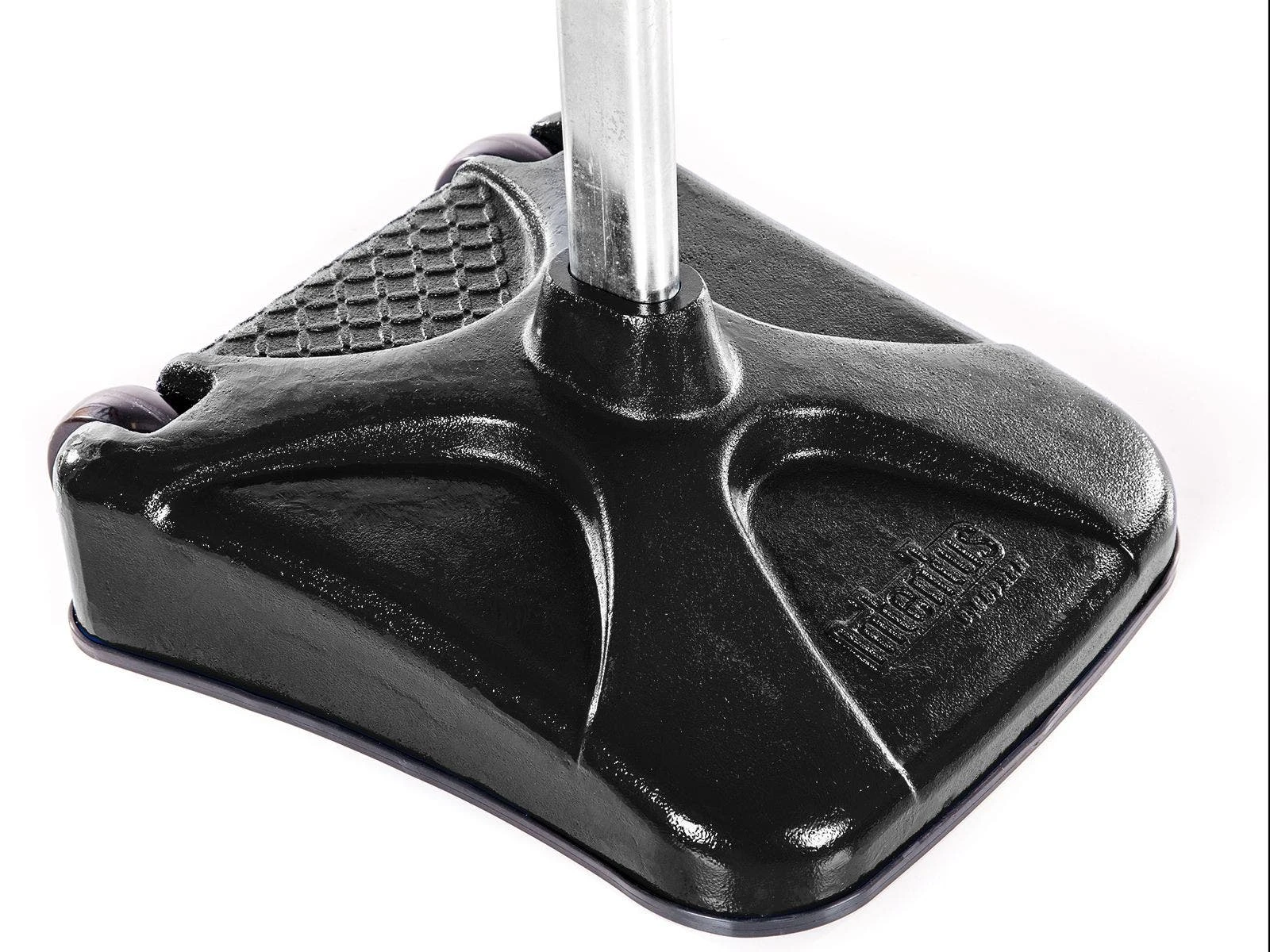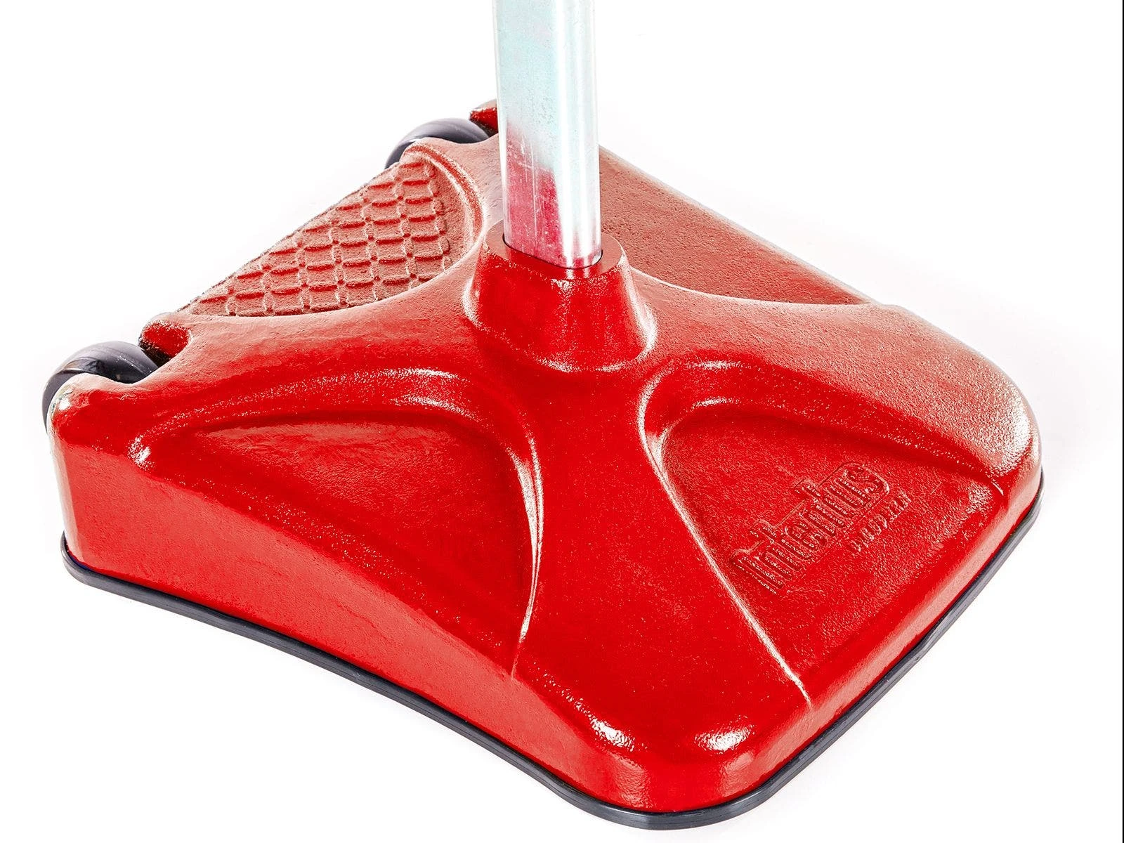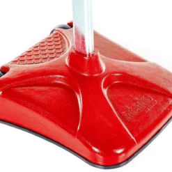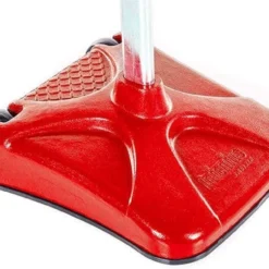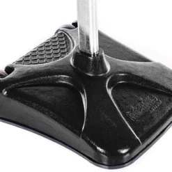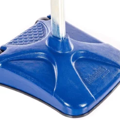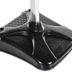 Unique rectangular base provides additional tension and stability to the pole. Made of powder-coated steel, the base will last for long periods of use without cracking or slipping. Weighing 150 lb, no sand or water is needed to keep the base in place. Built-in 6″ dia non-marring wheels make it easy to move the standard.
