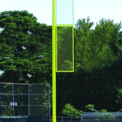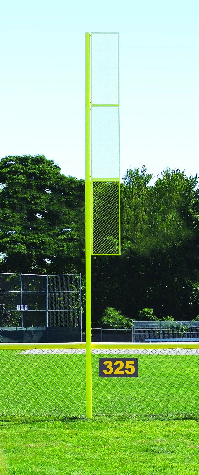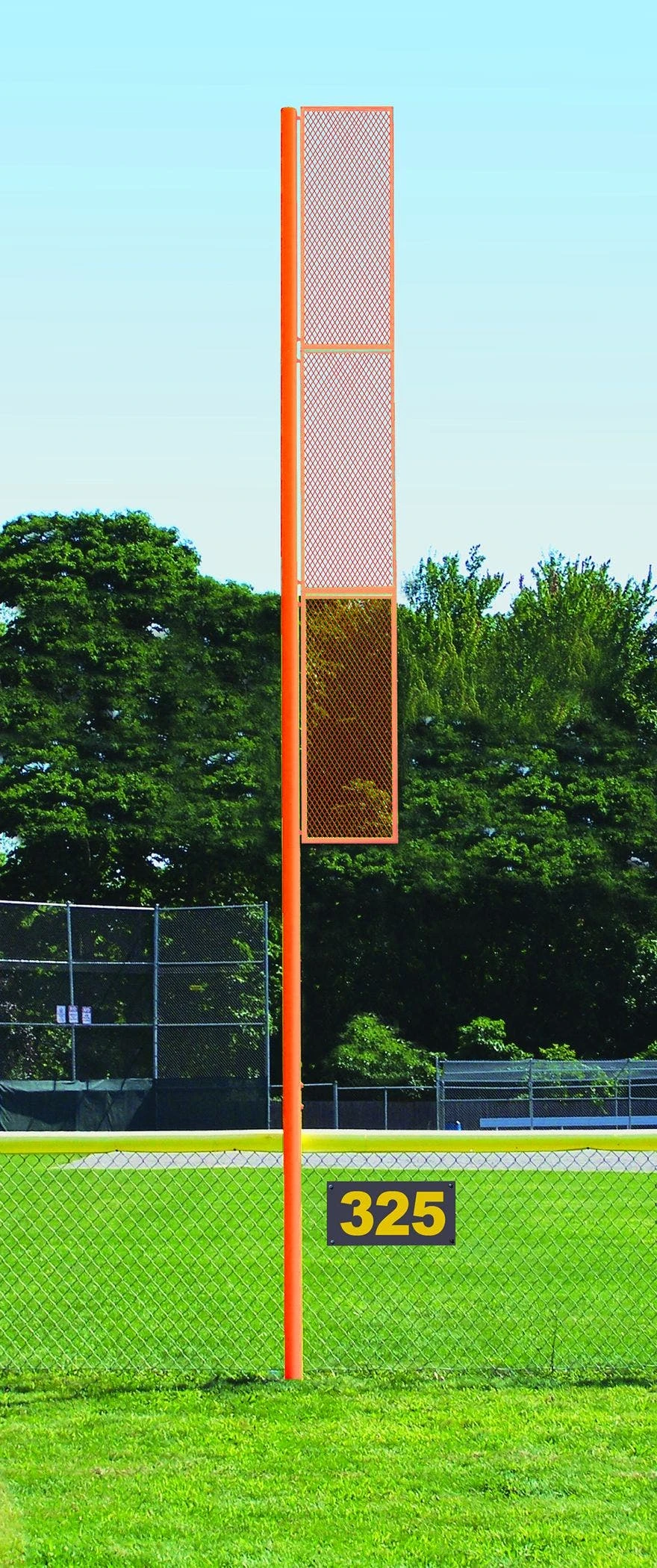 The 18″W x 12’H all-welded wing panel includes a 1-1/2″dia, 13 gauge expanded metal mesh to withstand hard impact. 3-1/2″ OD coated-steel tubing for long-lasting durability. Baseball poles are yellow, softball are orange. Designed for permanent and semi-permanent installation. Sleeves available separately.