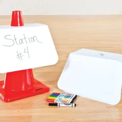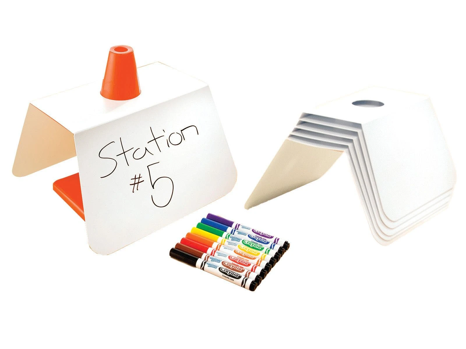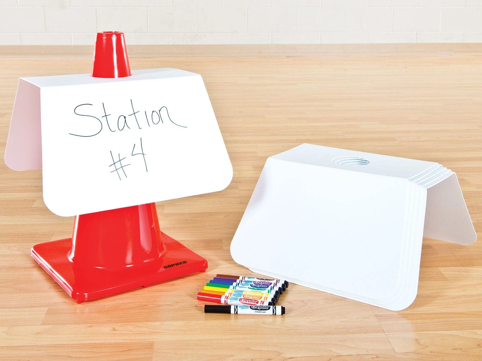 Write on these blank station markers to easily designate custom exercise stations and activity circuits for your students. These markers can be used by themselves or placed on top of cones that measure 12”H or taller (not included).