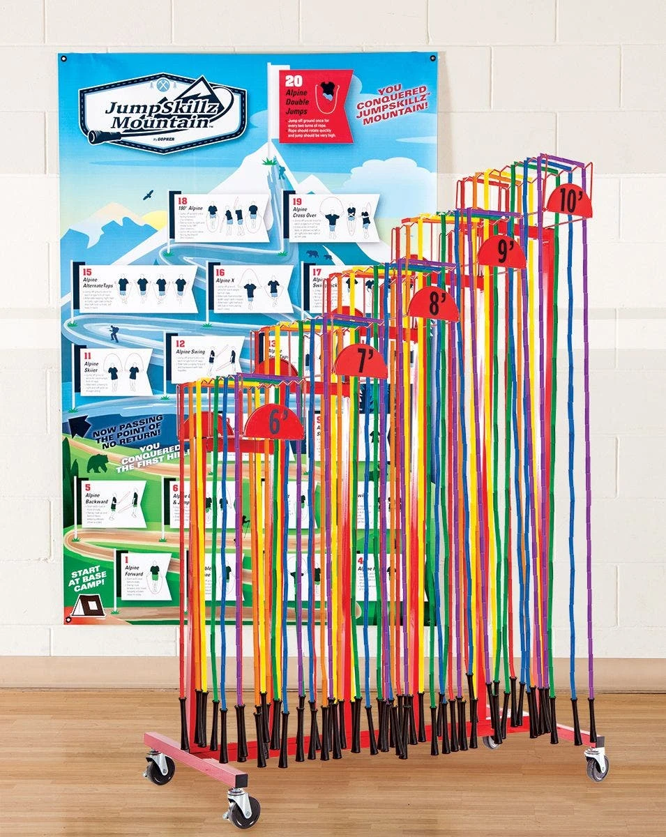 - JumpSkillz Mountain Speed Ropes Pack. Includes 60 Speed Ropes (12 ea 6’L, 7’L, 8’L, 9’L, and 10’L), Teacher Cards, and a MeasureUp Rack.