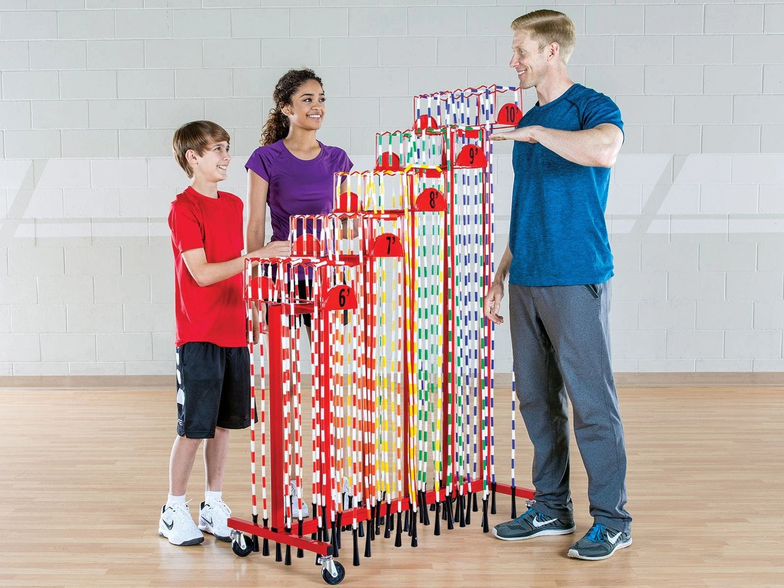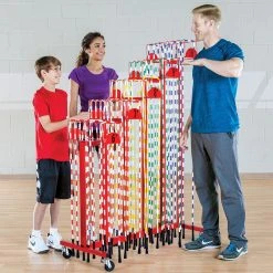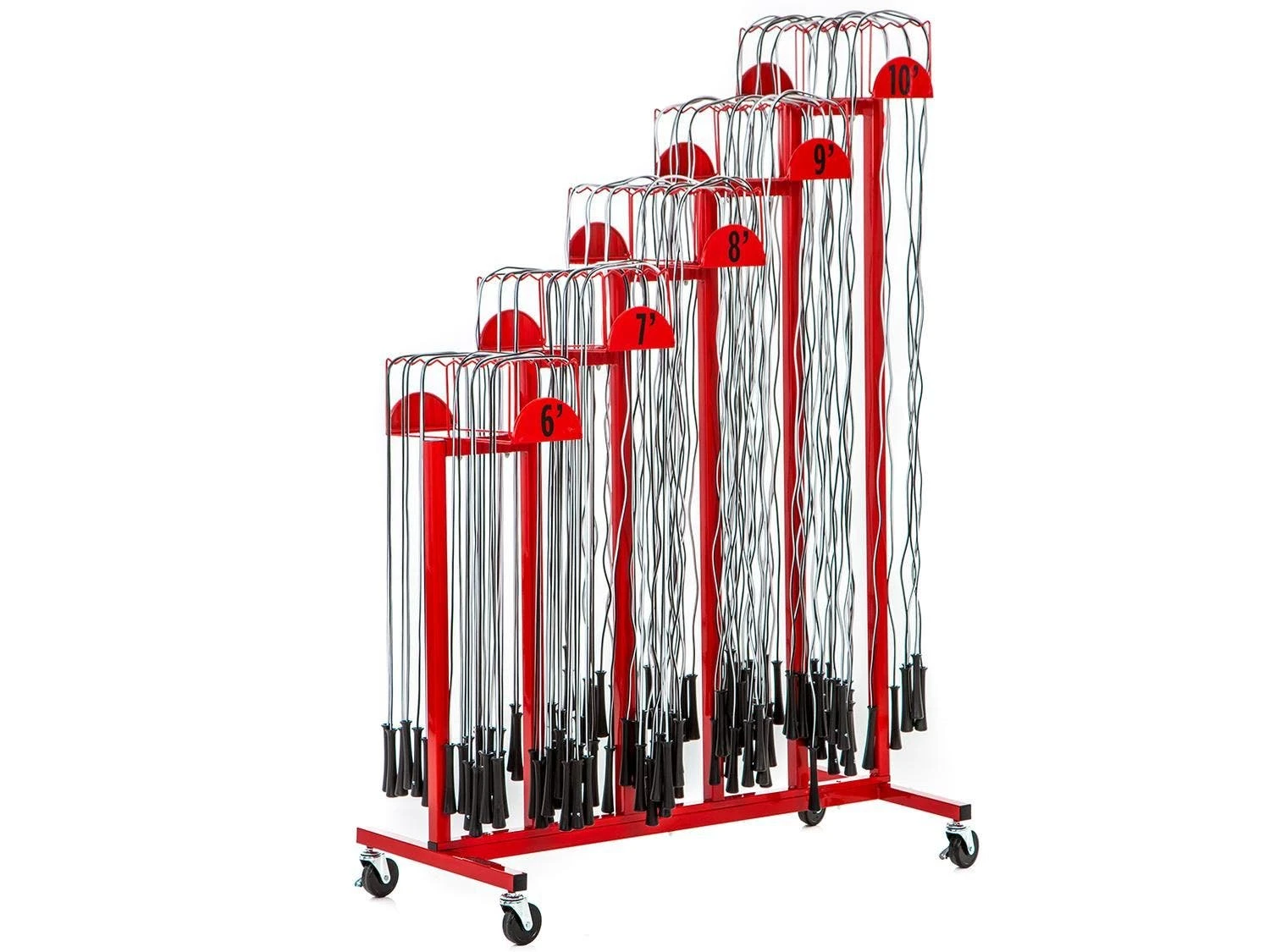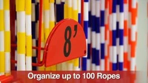This versatile rack works with any type of jump rope and is designed to help students select the perfect length rope. A series of staggered hooks separate ropes by size, indicating to students which one is the perfect fit. Includes 60 segmented or licorice jump ropes.