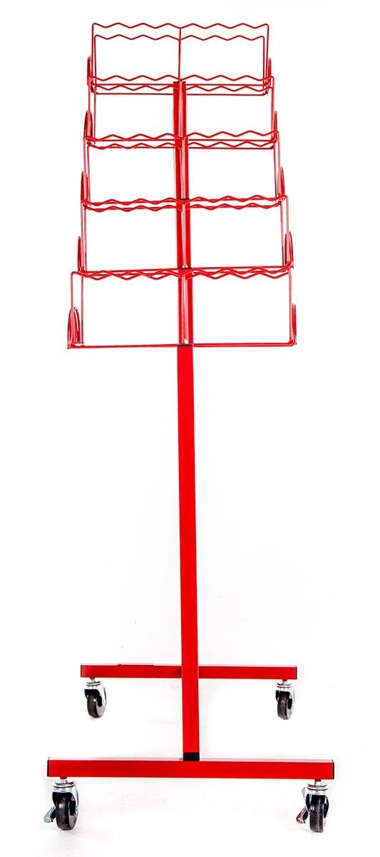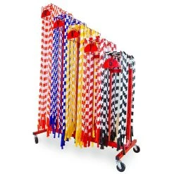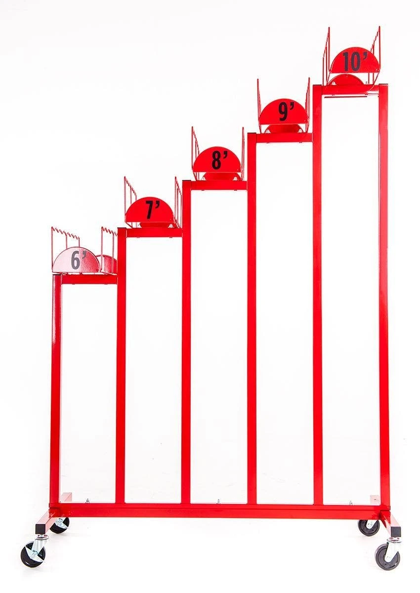 This rack features powder-coated steel for long-lasting durability. A wide base keeps it stable when standing still and in transit. The rack moves easily and effortlessly through doorways. Simply lock the casters to keep it in place so it will not roll as students select their jump ropes. Rack can be used indoors or out. Assembly is required. Rack measures 42-1/2”L x 20”W x 64”H; 50 lb.