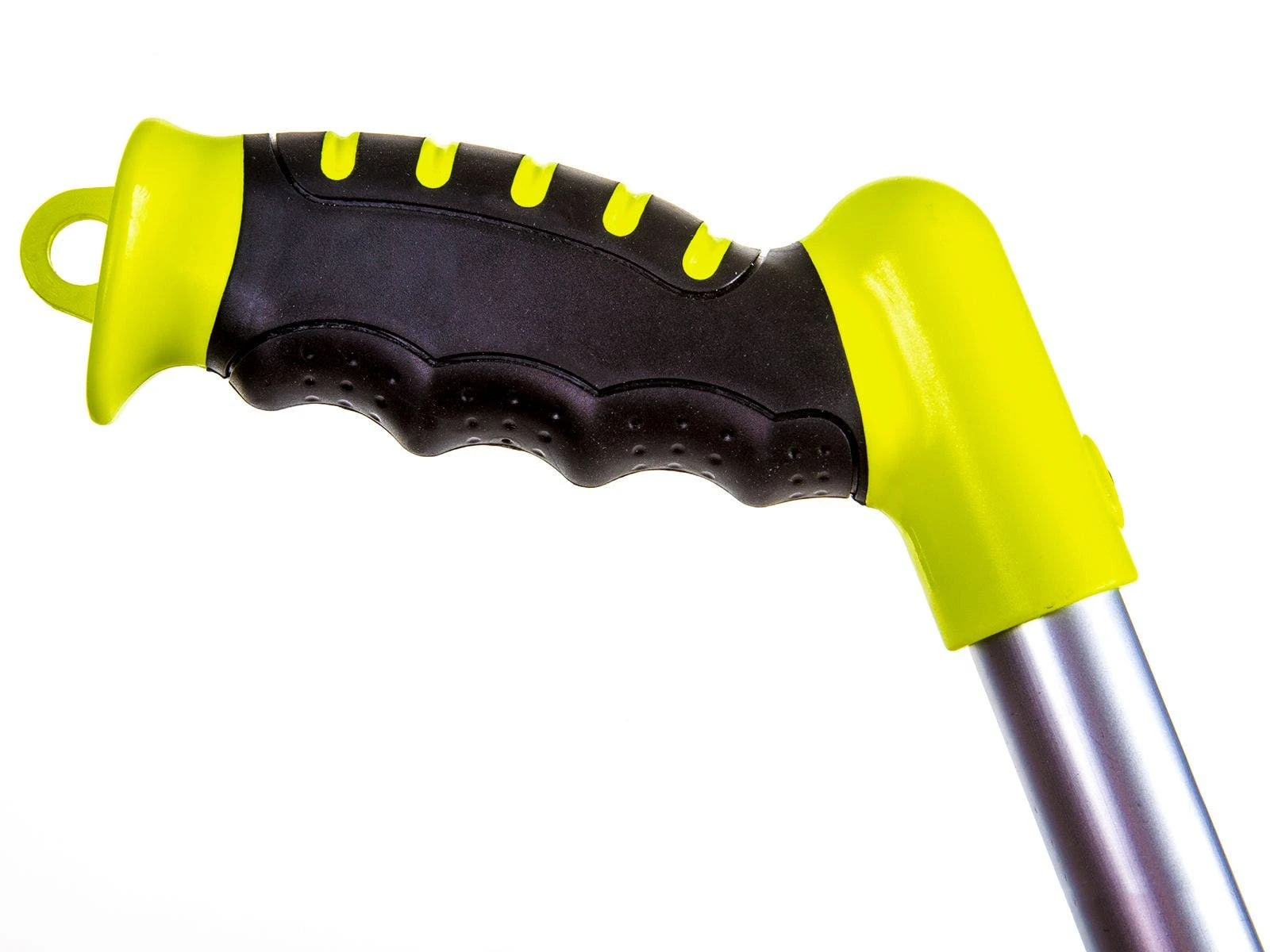 A kickstand flips down to allow it to stand by itself when you need to step away. The foot/inch model’s handle folds in half, while the metric and digital models have telescoping handles for simple storage.