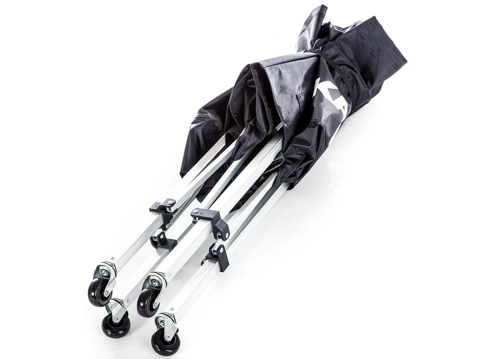 Durable aluminum frame stands up to routine use. It resists dings, dents, and everyday wear and tear that comes from a large-group setting. Nylon basket holds 24 volleyballs for easy access. When the cart is no longer needed, simply fold and slide it into the included nylon storage bag.