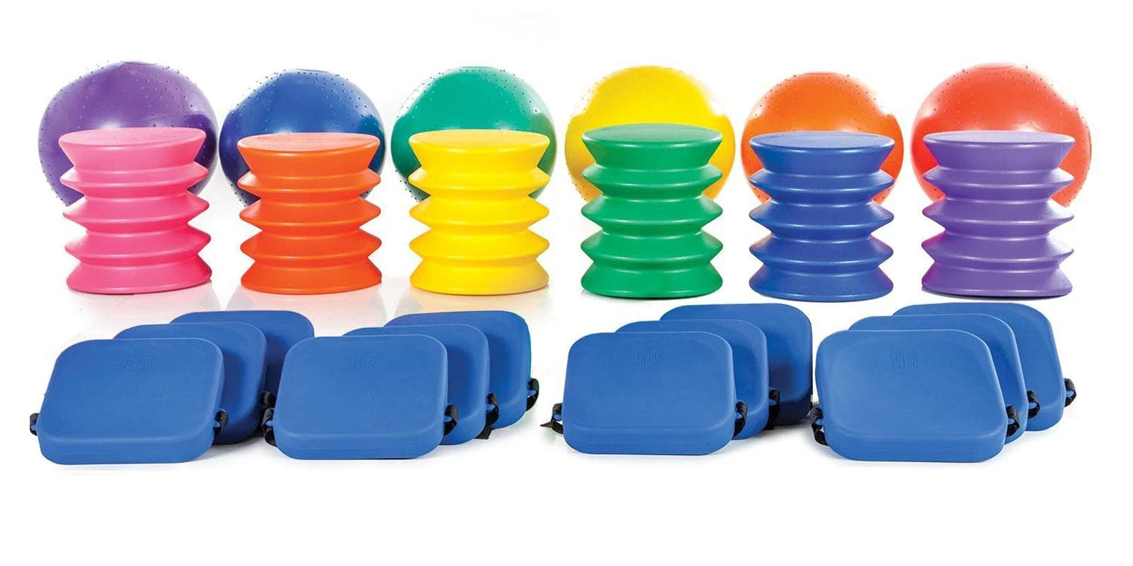Pack features our most basic active seat selections for quick and easy incorporation into the classroom. Includes 6 BALLance Stability Ball Chairs, 6 ergoErgo Seats, and 12 EverSteady Active Seat Cushions. Choose from Elementary or Jr High/High School options. Packs vary in equipment size only. More details on pack contents below.