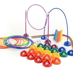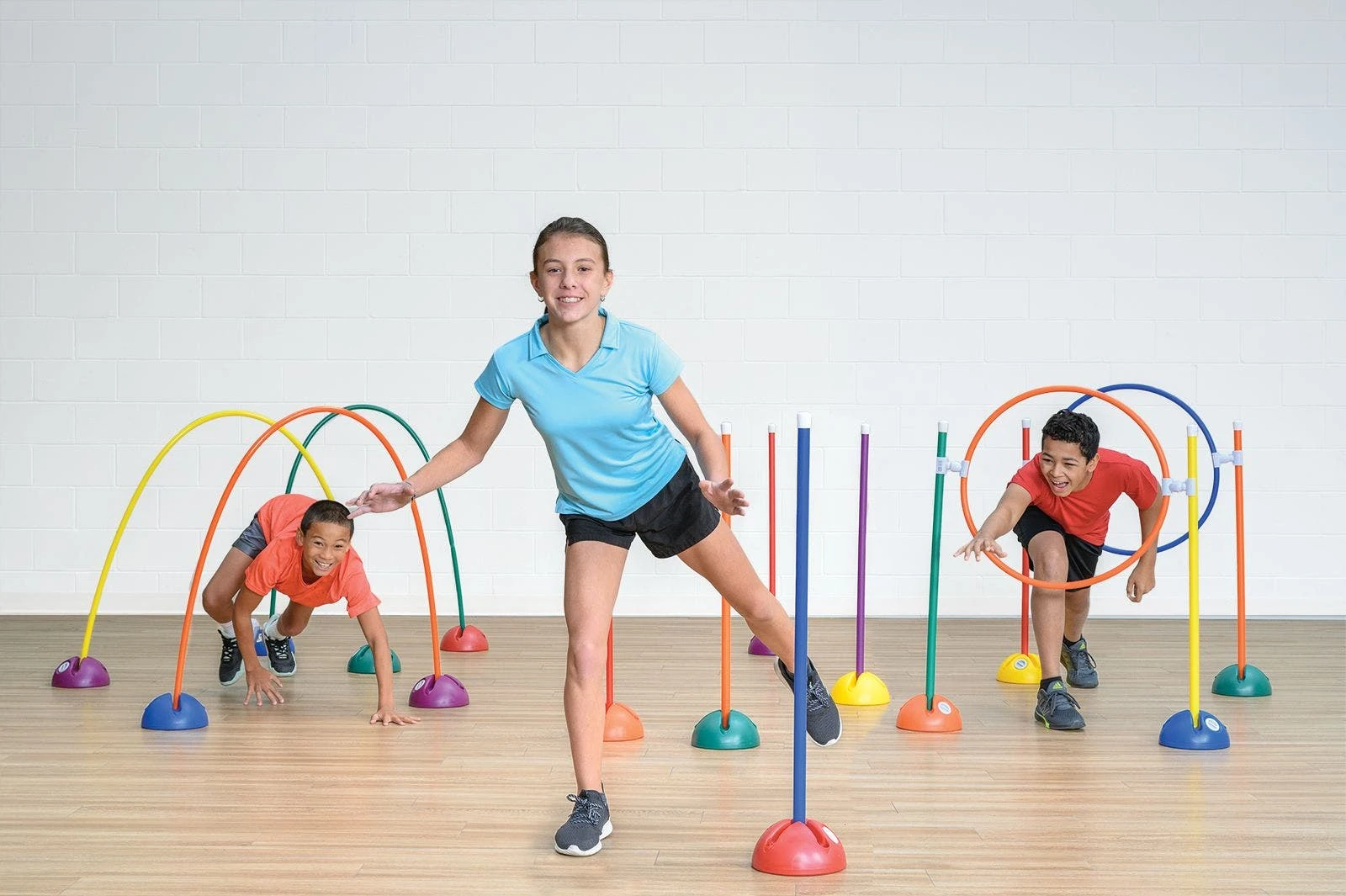 Create a new and challenging obstacle course every time with this convenient pack. It includes many of the same great features as the original Multi-Dome Activity Sets, but these domes are just on a smaller scale. The obstacles help students become familiar with objects and how to fit through them. Teachers can also use the arch gates as soccer goals or create targets with the Klipz and hoops for throwing practice.